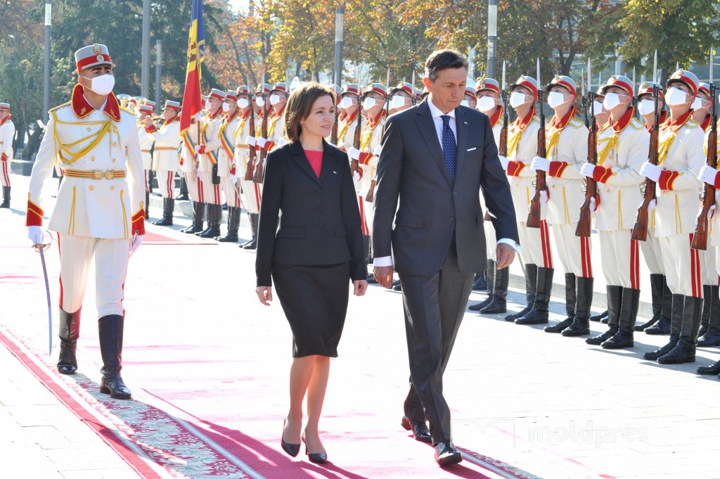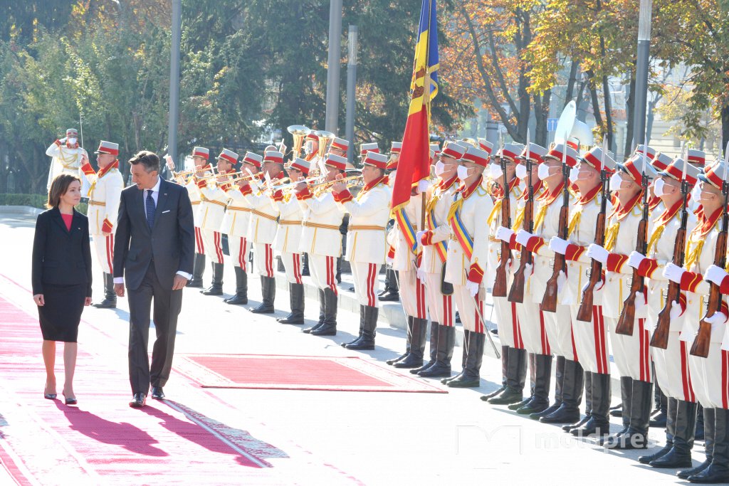 Ceremonia oficială de întâmpinare a Președintelui Republicii Slovenia, Borut Pahor, de către Președintele Republicii Moldova, Maia Sandu
