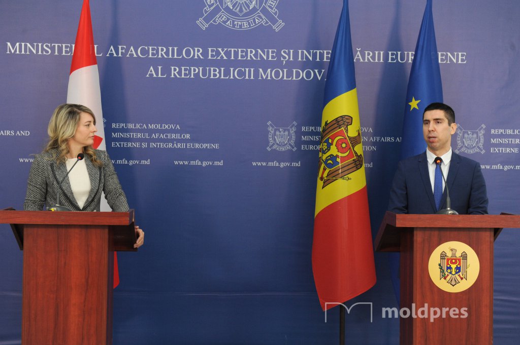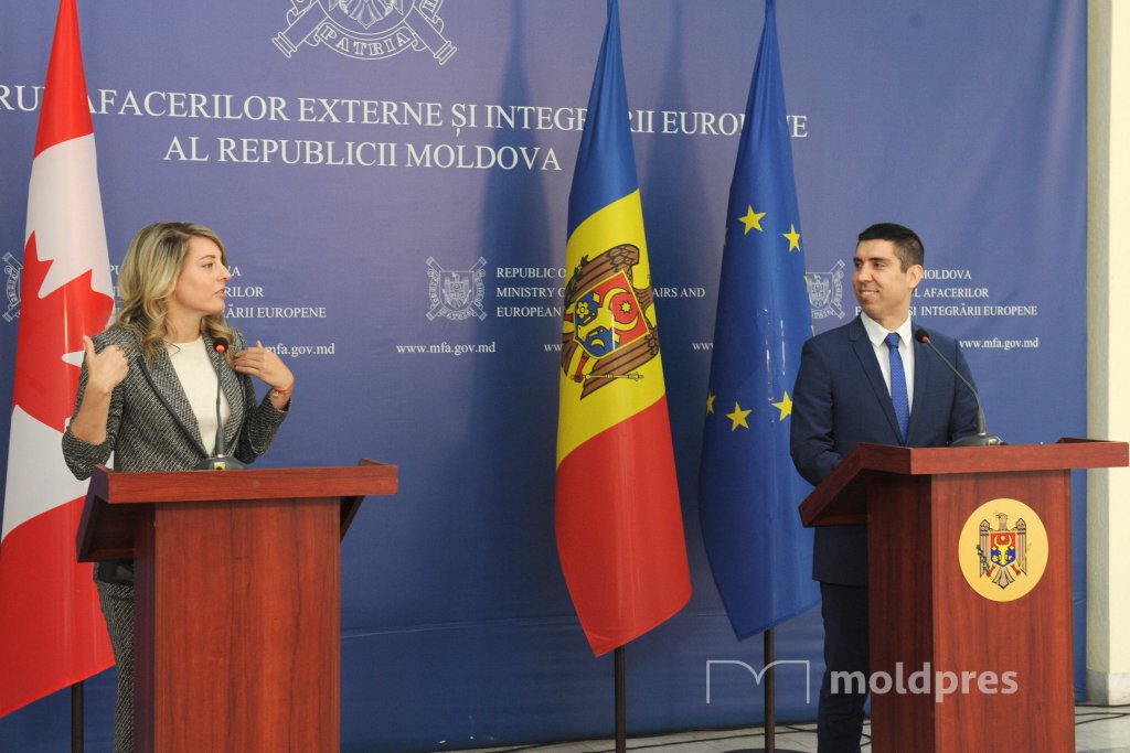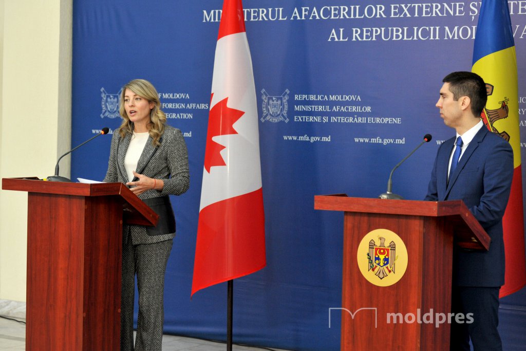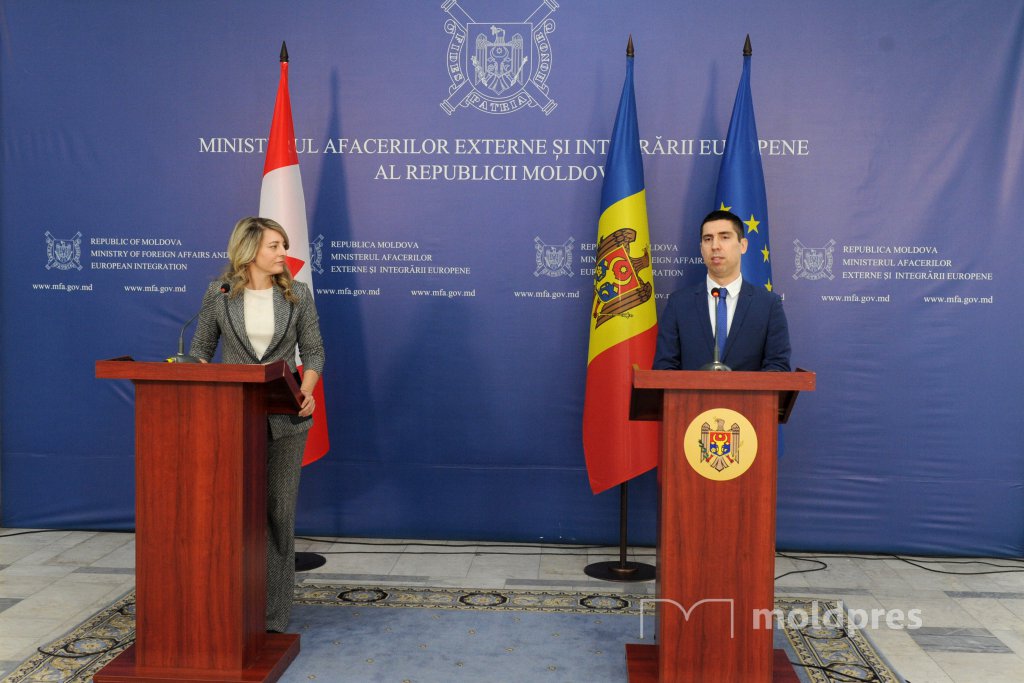 Conferință de presă susținută de ministrul afacerilor externe și integrării europene al Republicii Moldova, Mihai Popșoi, și ministra afacerilor externe a Canadei, Mélanie Joly