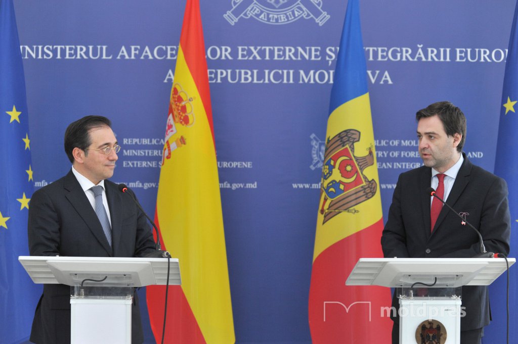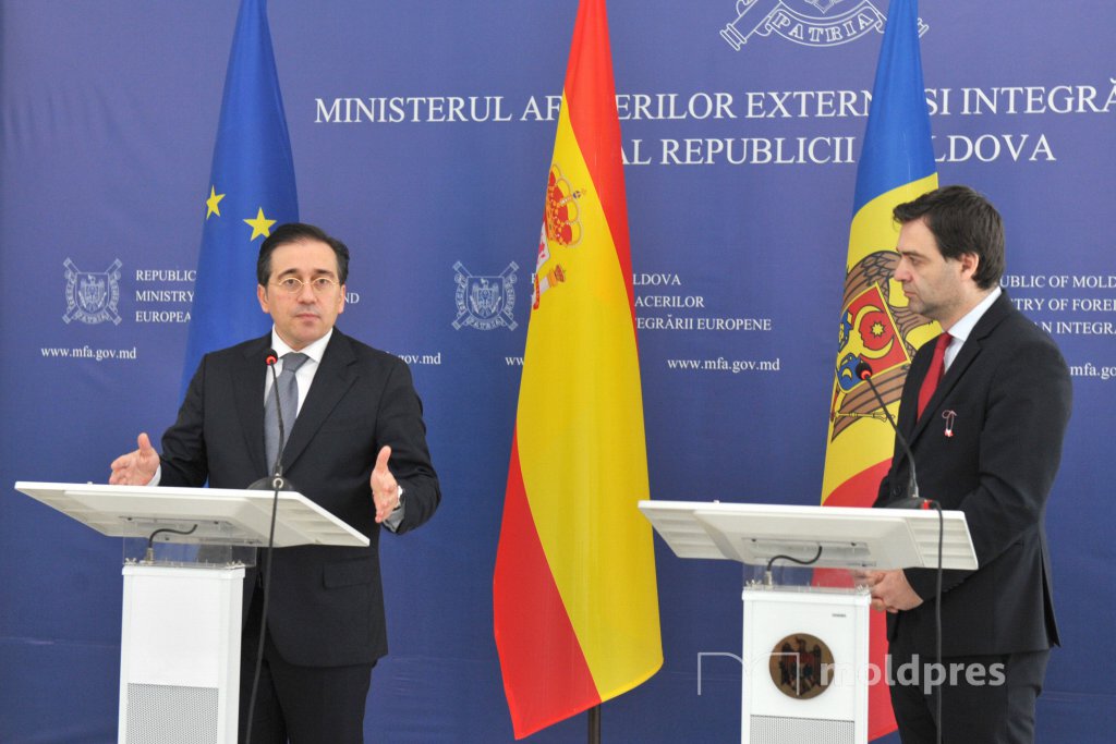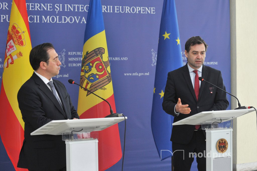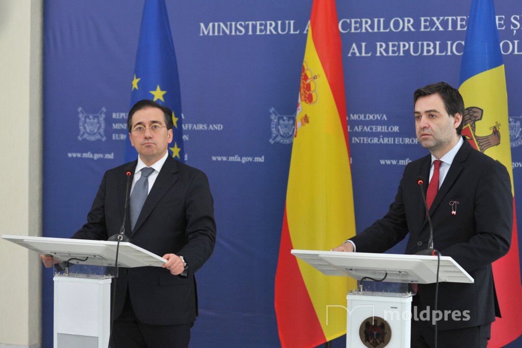 Conferință de presă susținută de ministrul afacerilor externe și integrării europene al Republicii Moldova, Nicu Popescu, și ministrul afacerilor externe, Uniunii Europene și cooperării al Regatului Spaniei, José Manuel Albares Bueno