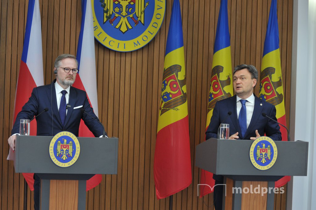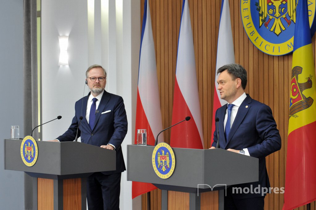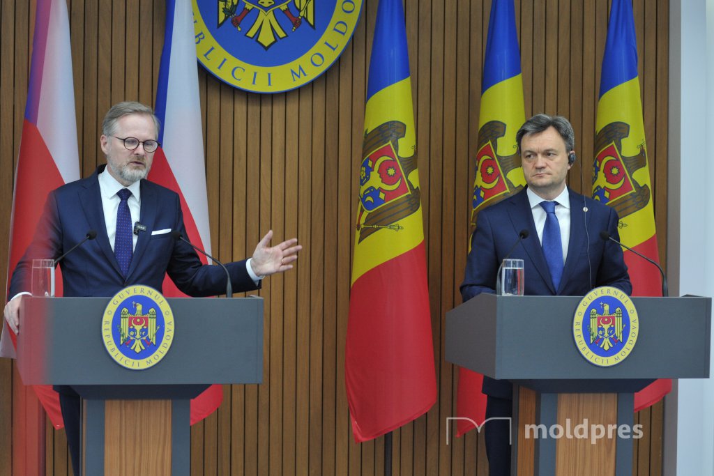 Conferință de presă susținută de prim-ministrul Republicii Moldova, Dorin Recean, și prim-ministrul Republicii Cehe, Petr Fiala
