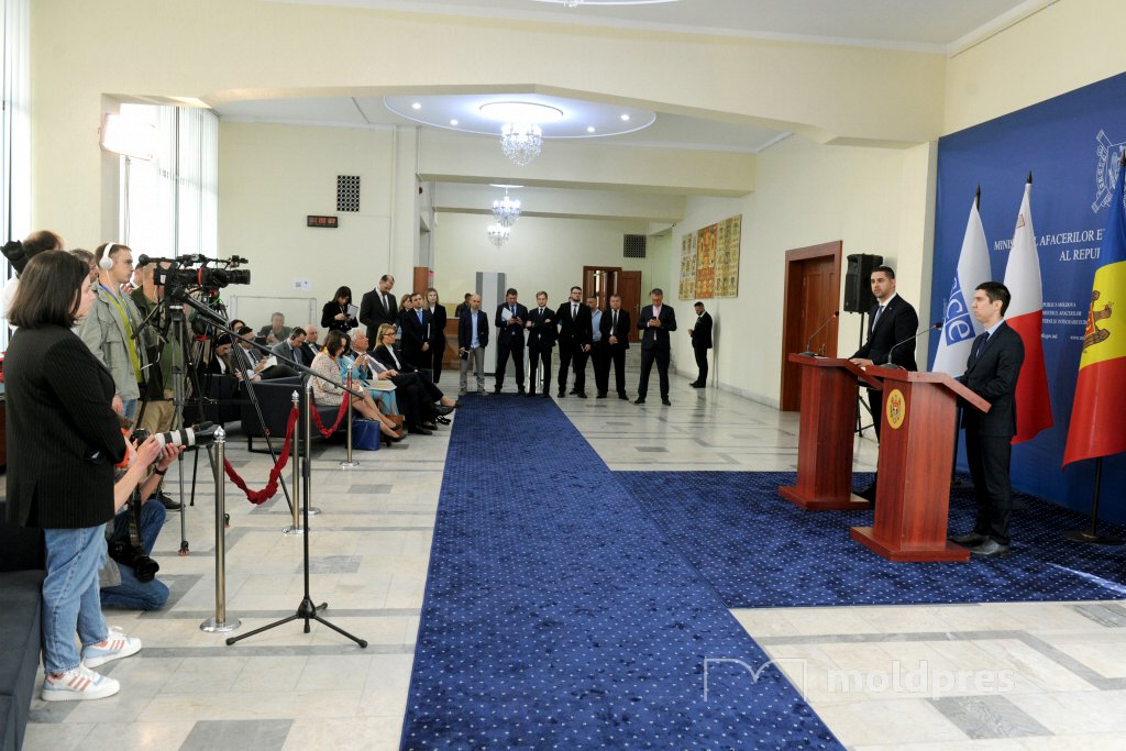 Conferință de presă susținută de viceprim-ministrul, ministrul afacerilor externe al Republicii Moldova, Mihai Popșoi, și președintele în exercițiu al OSCE, ministrul afacerilor externe, europene și comerțului al Maltei, Ian Borg