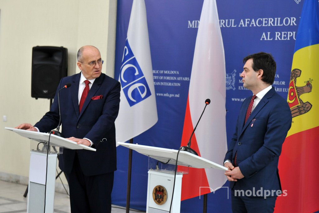 Conferință de presă susținută de viceprim-ministrul, ministrul afacerilor externe și integrării europene Nicu Popescu și Zbigniew Rau, președintele în exercițiu al OSCE, ministrul afacerilor externe al Poloniei