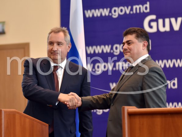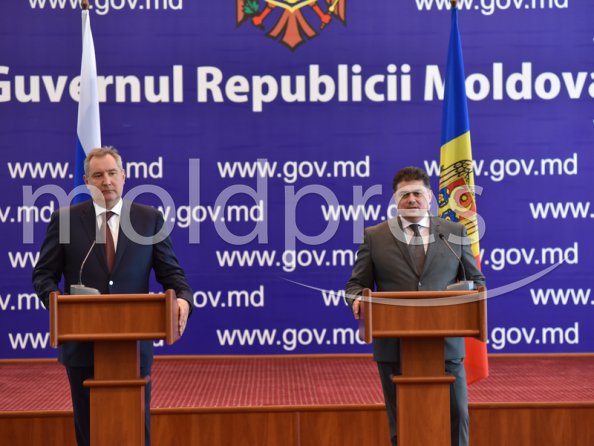Declarații de presă ale co-președinților Comisiei interguvernamentale moldo-ruse pentru cooperare economică (viceprim-ministrul, ministrul Economiei, Octavian Calmîc, și viceprim-ministrul, Dmitri Rogozin)
