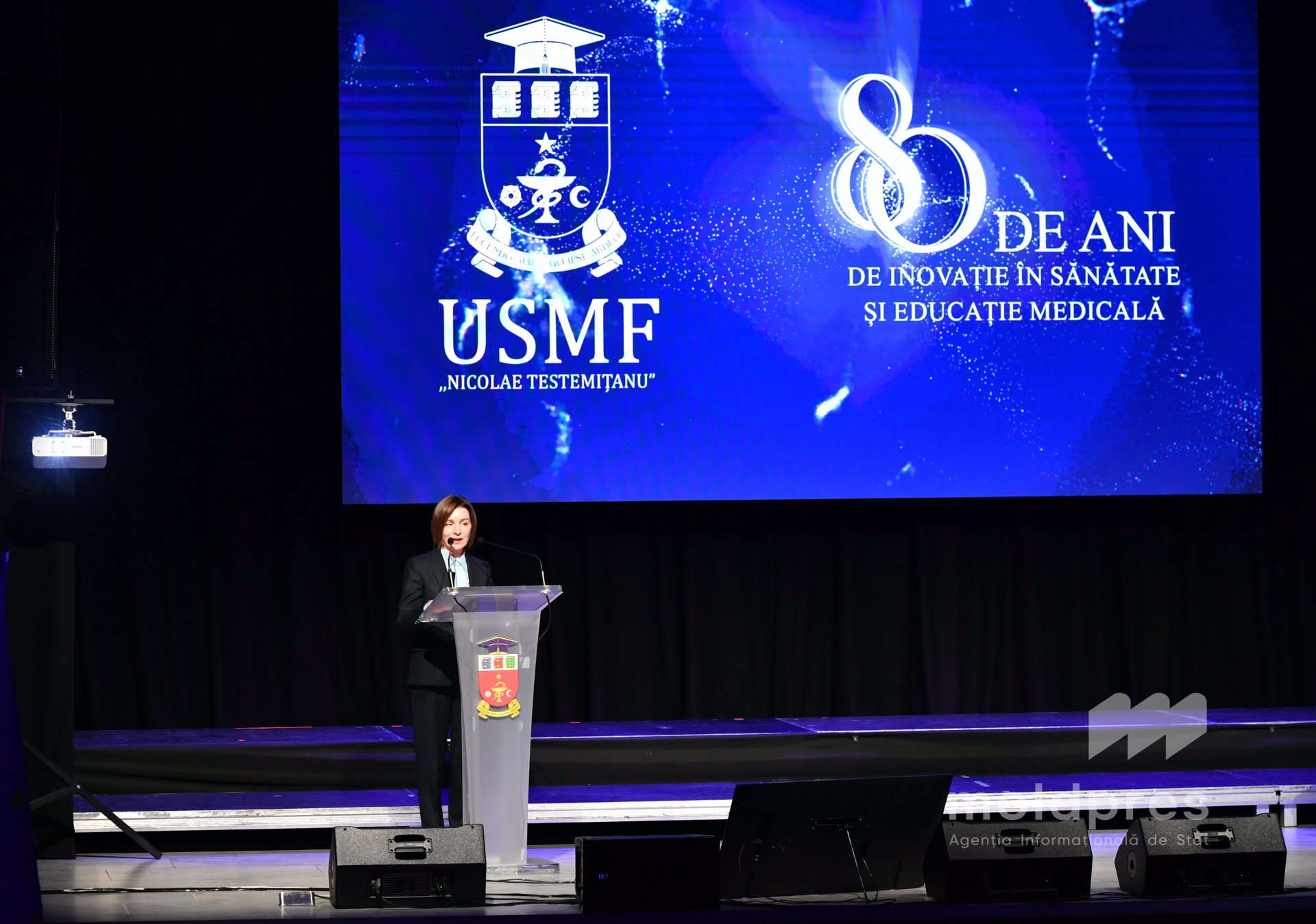USMF „Nicolae Testemițanu” marchează 80 de ani de activitate. Președinta Maia Sandu: „Universitatea este apreciată astăzi nu doar în Republica Moldova, dar și departe de hotarele țării noastre”