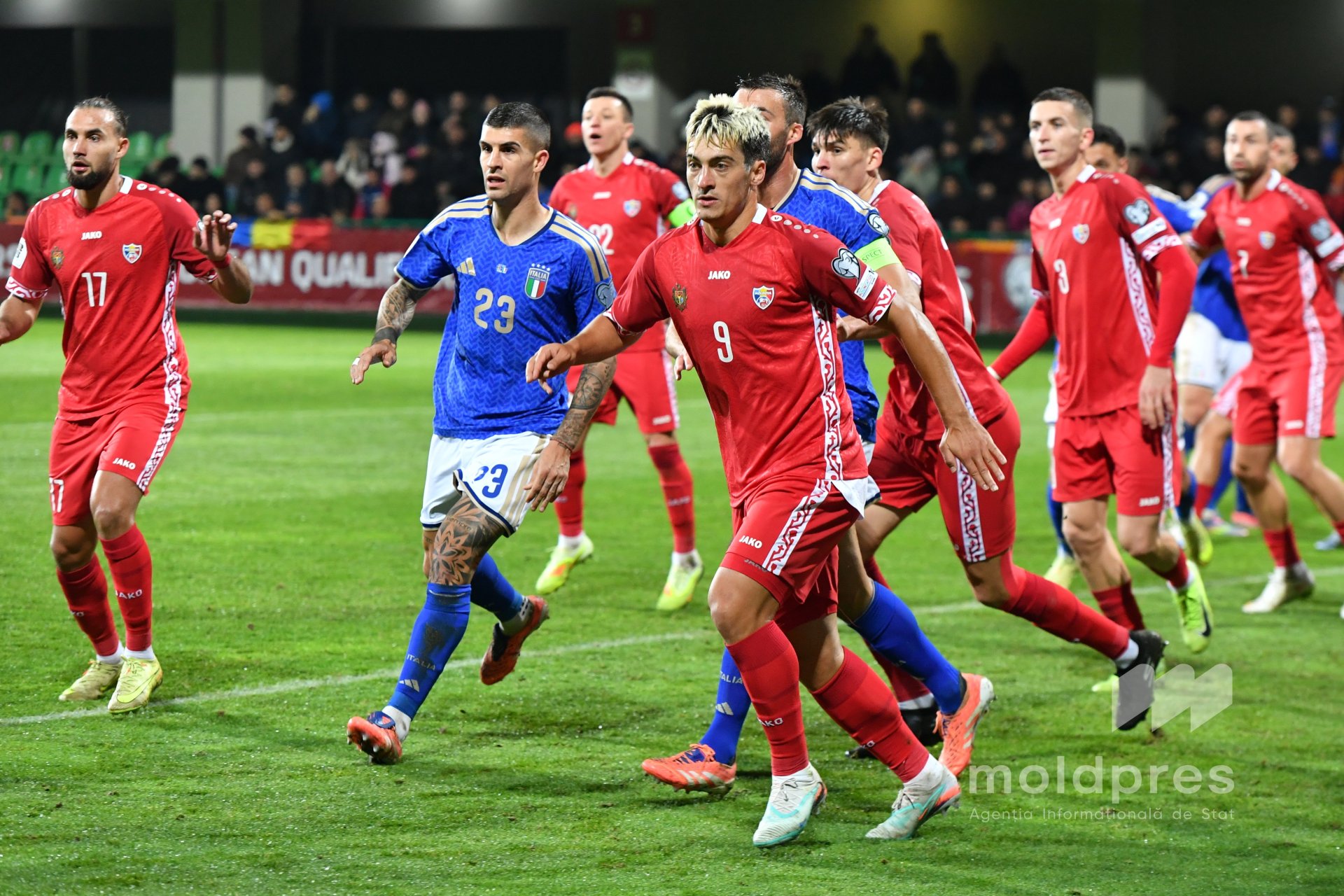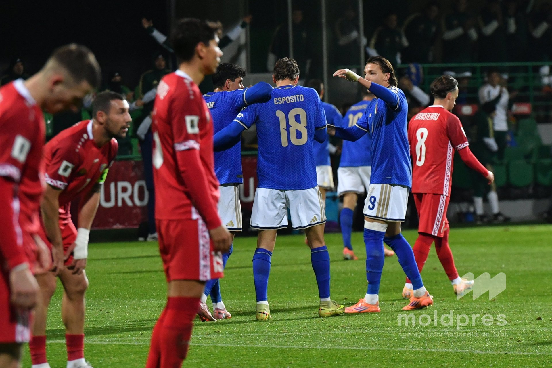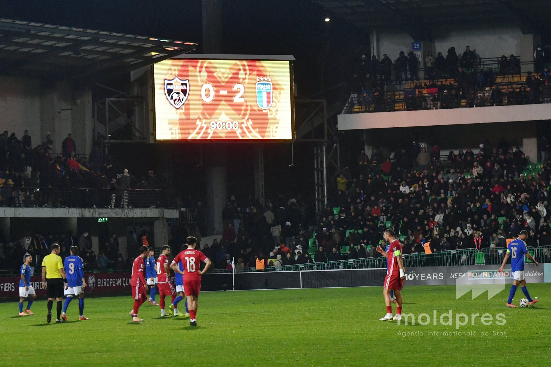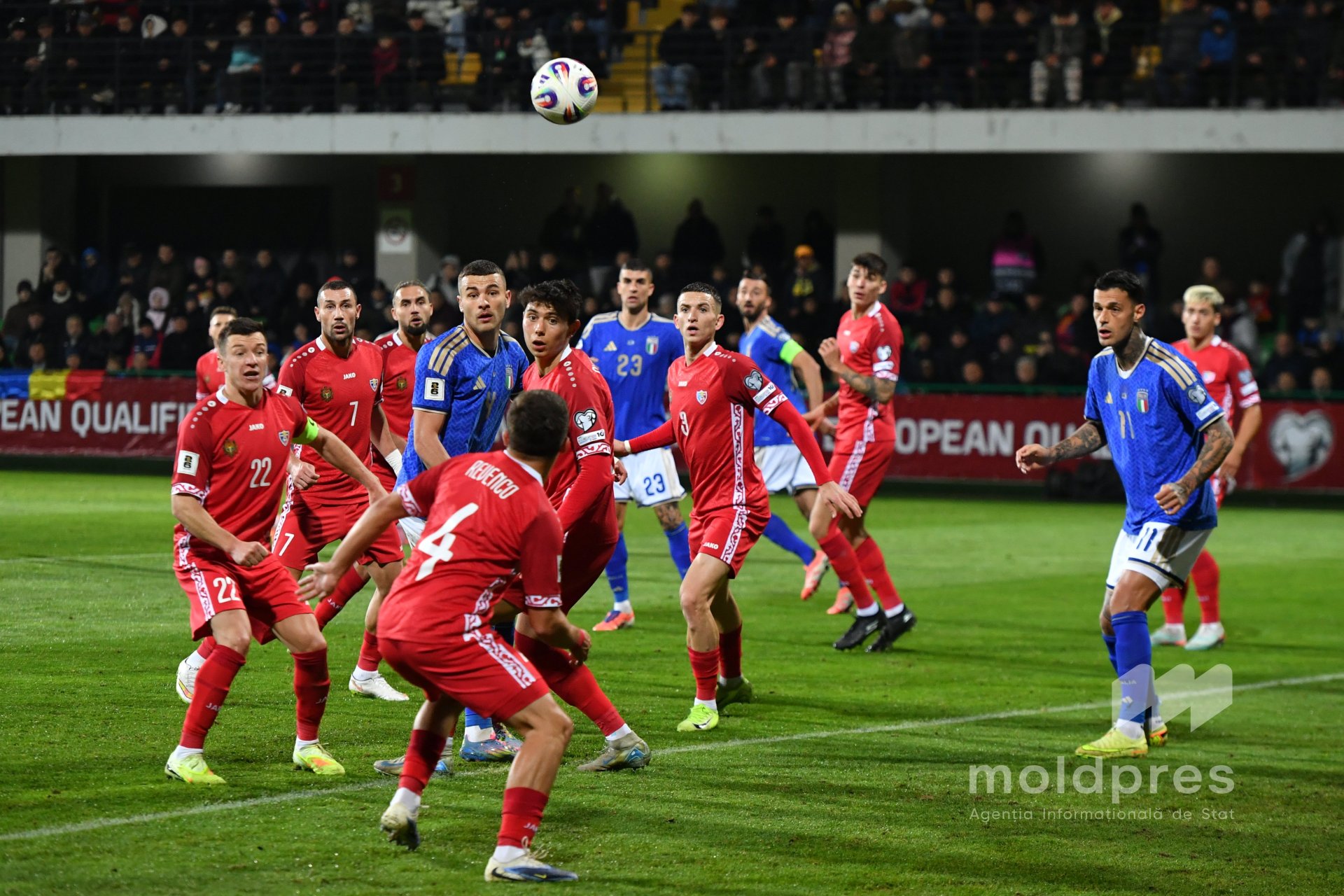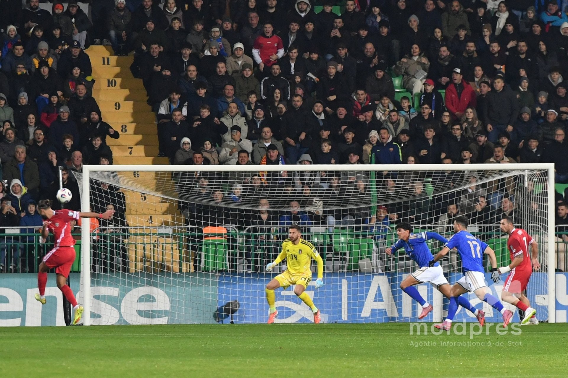 Selecționata Moldovei s-a întâlnit joi seara cu reprezentativa Italiei în penultimul meci al preliminariilor Campionatului Mondial 2026. Meciul a fost disputat pe stadionul „Zimbru” din Chișinău, în fața a 9.526 de spectatori.