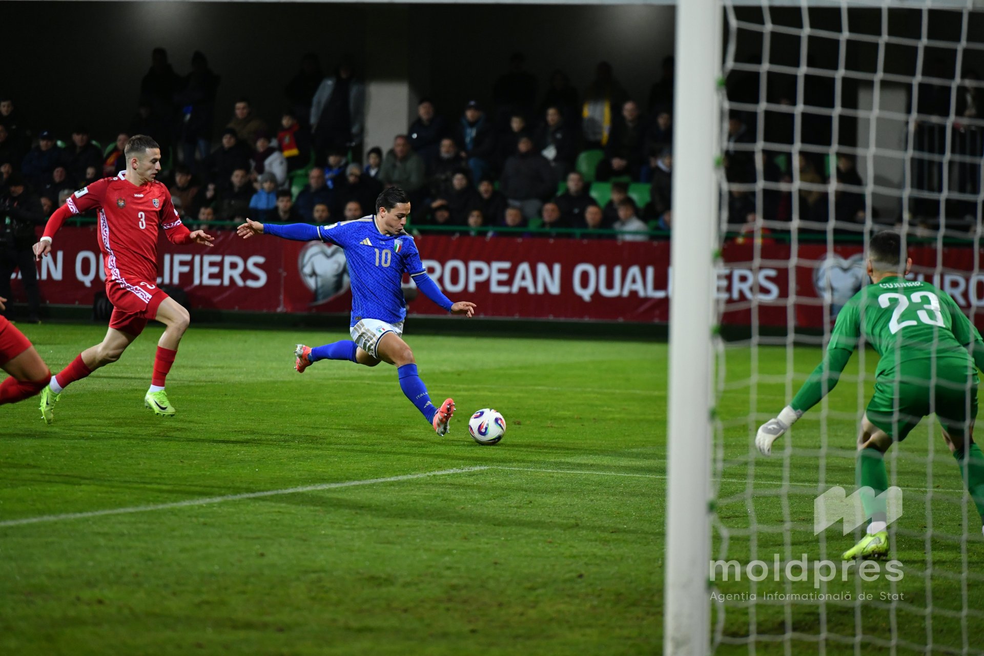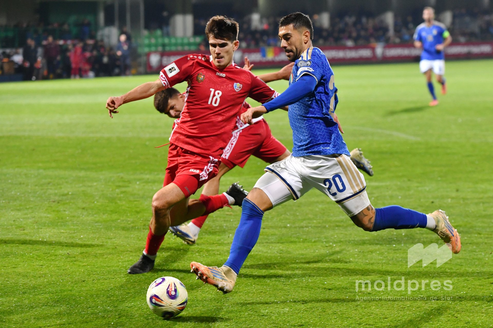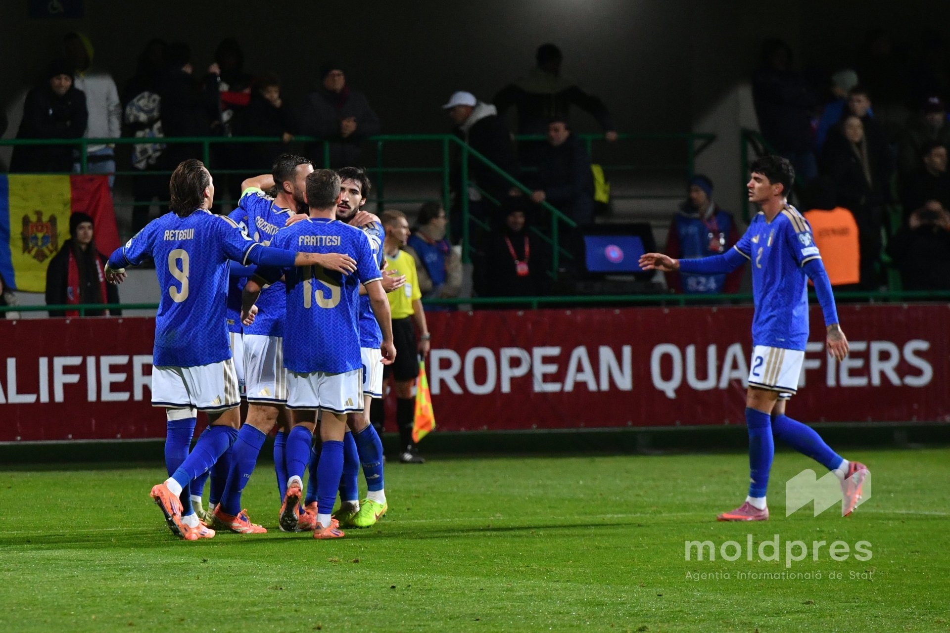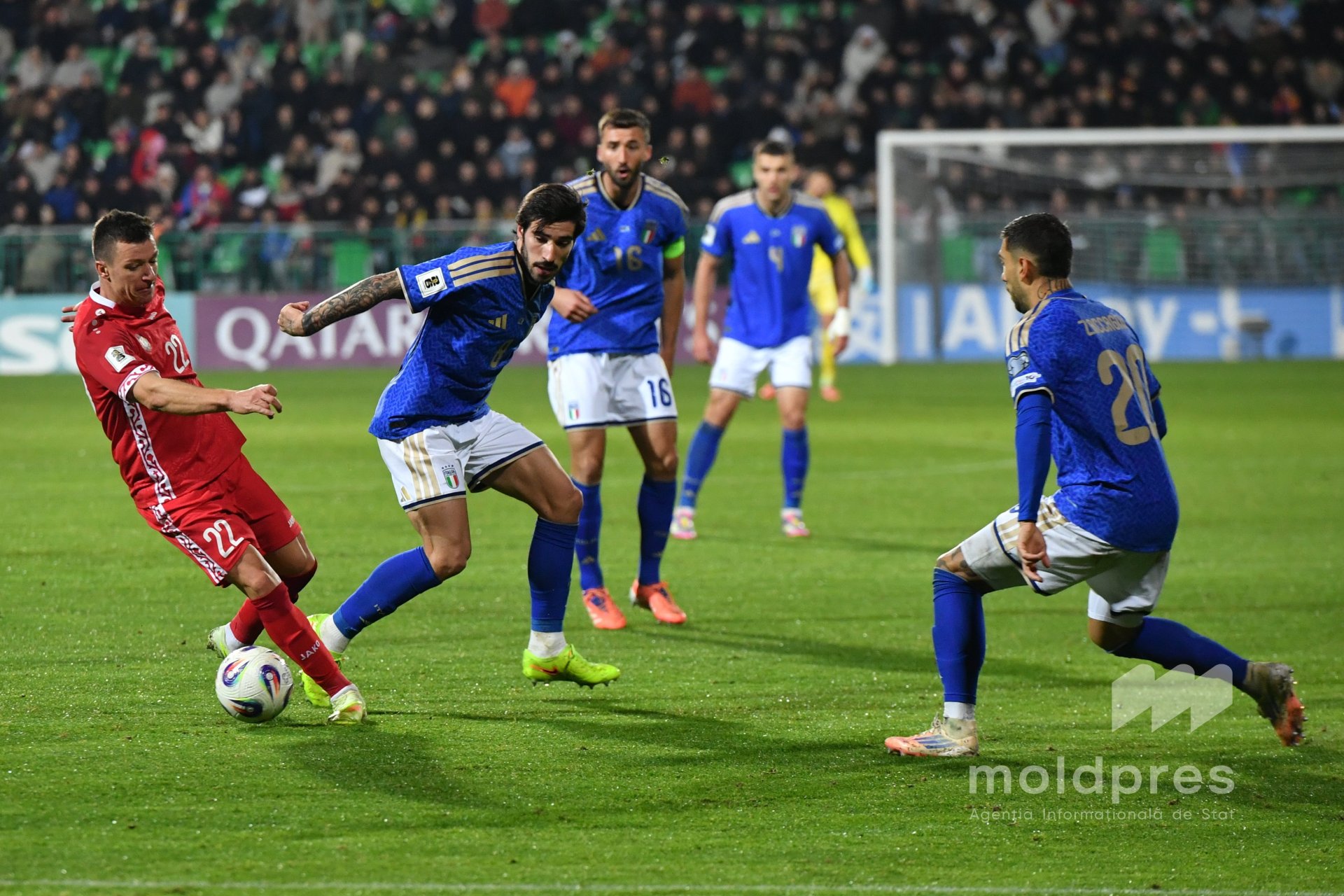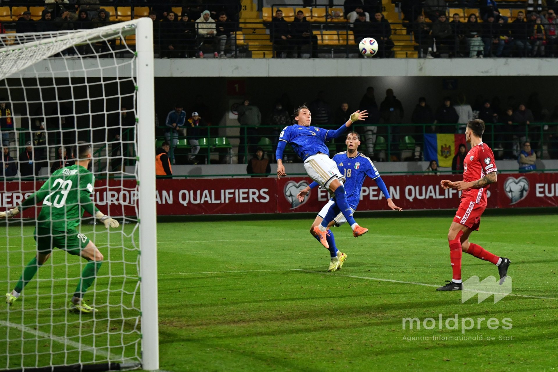 Selecționata Moldovei s-a întâlnit joi seara cu reprezentativa Italiei în penultimul meci al preliminariilor Campionatului Mondial 2026. Meciul a fost disputat pe stadionul „Zimbru” din Chișinău, în fața a 9.526 de spectatori.