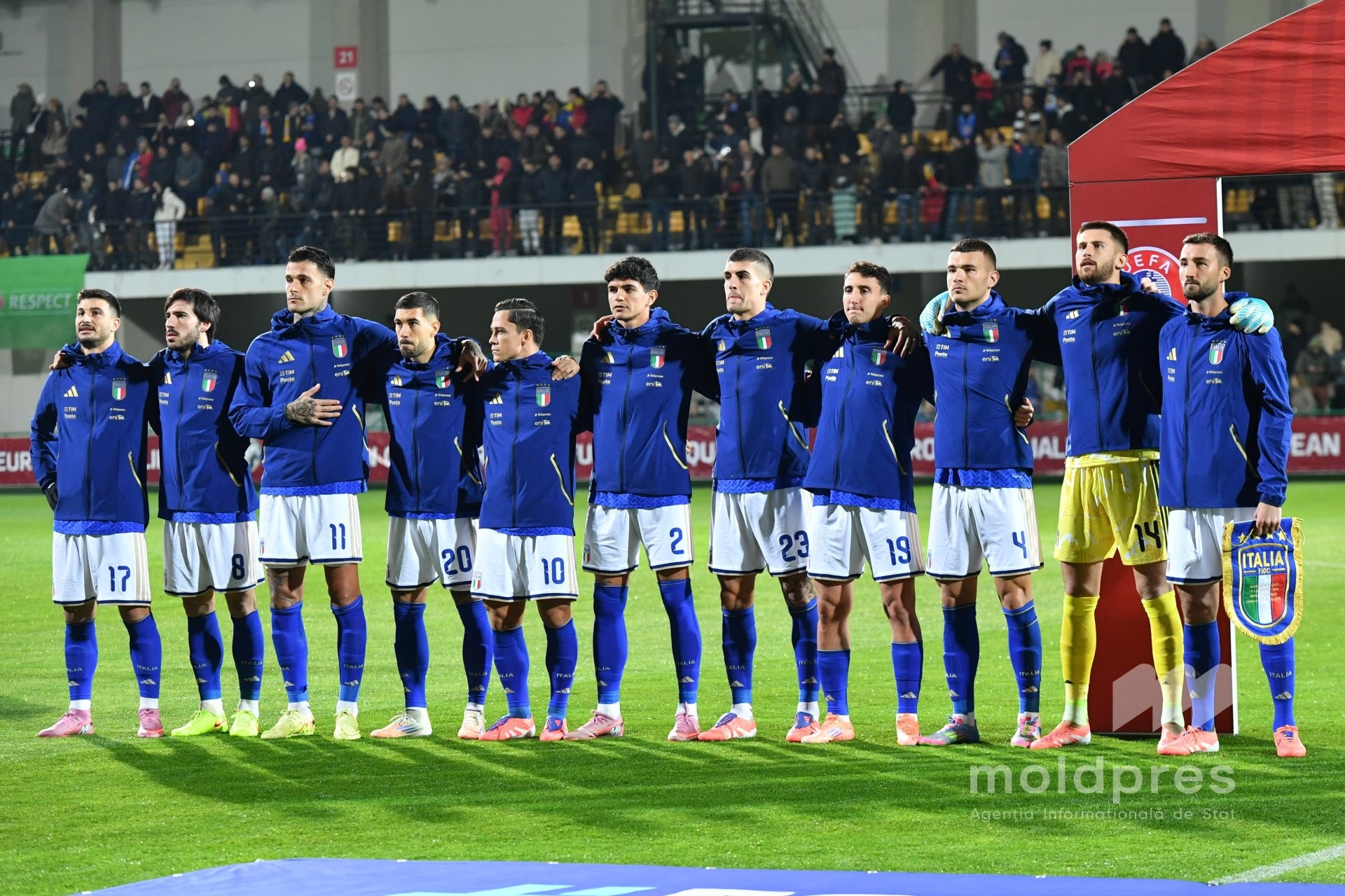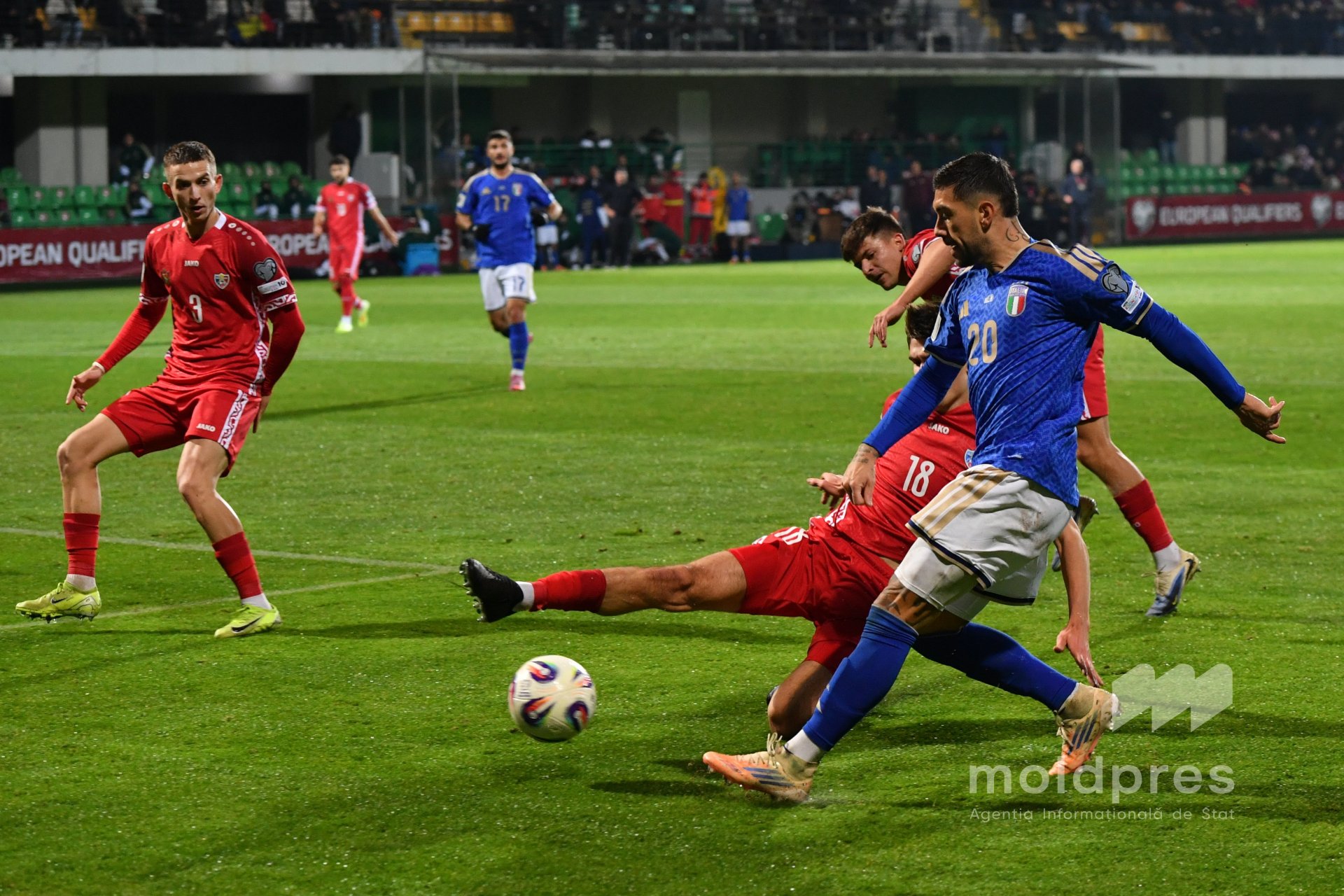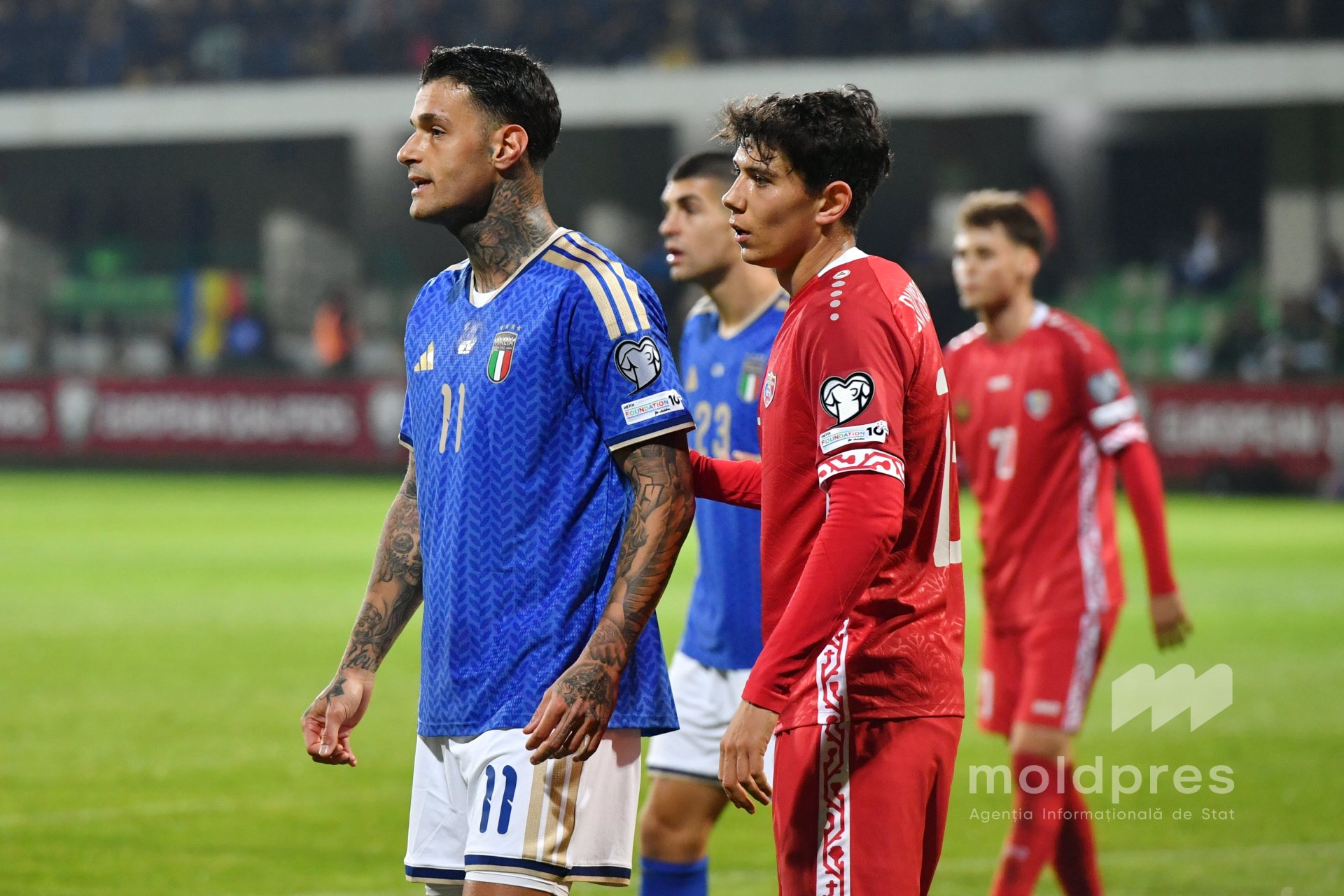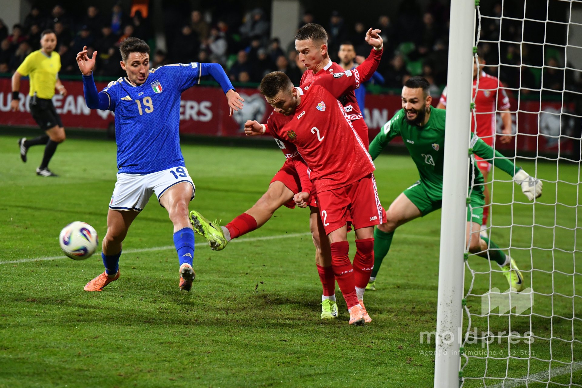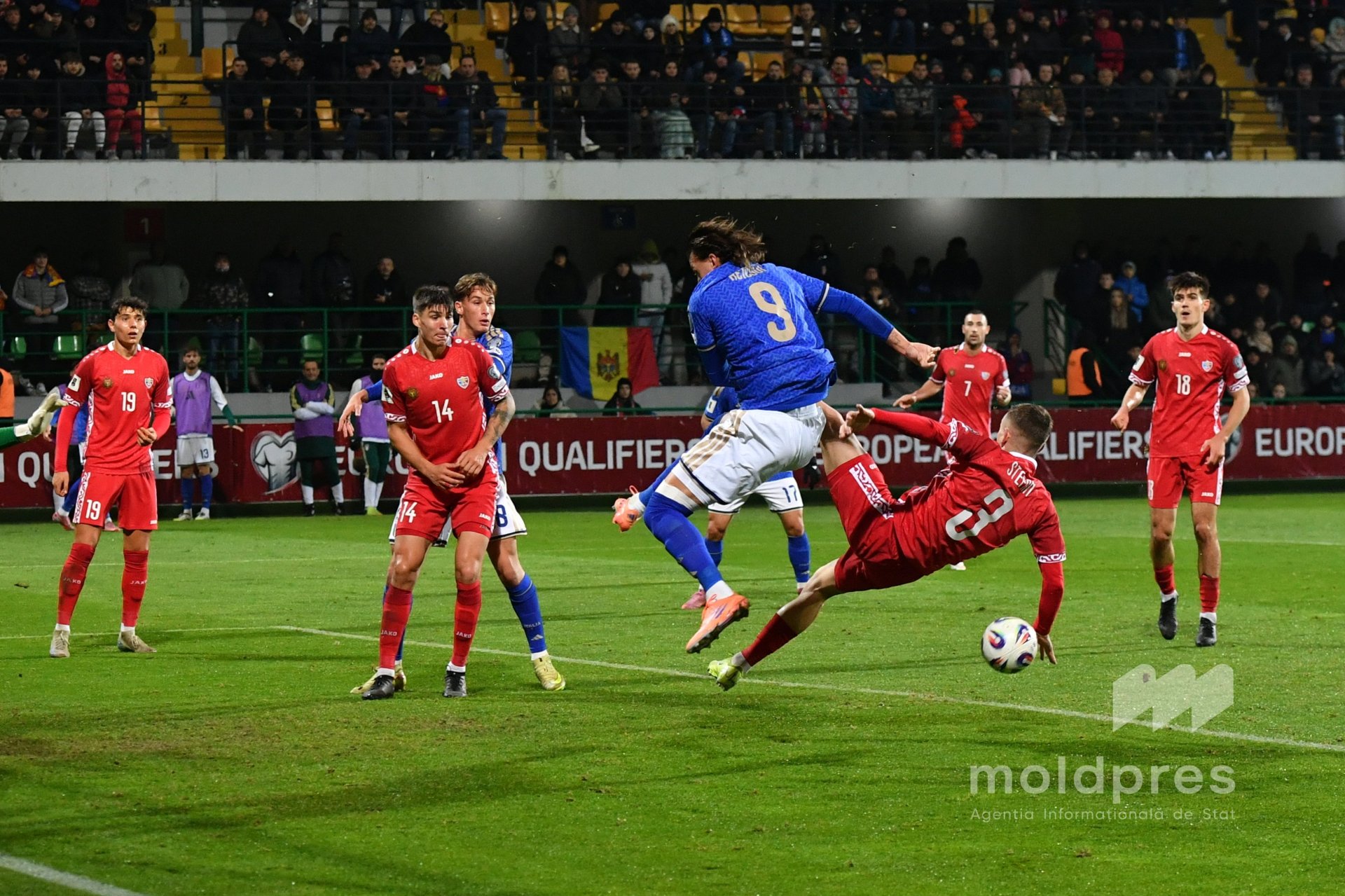 Selecționata Moldovei s-a întâlnit joi seara cu reprezentativa Italiei în penultimul meci al preliminariilor Campionatului Mondial 2026. Meciul a fost disputat pe stadionul „Zimbru” din Chișinău, în fața a 9.526 de spectatori.
