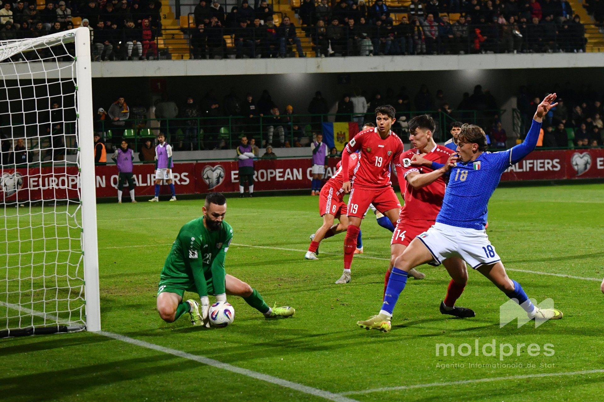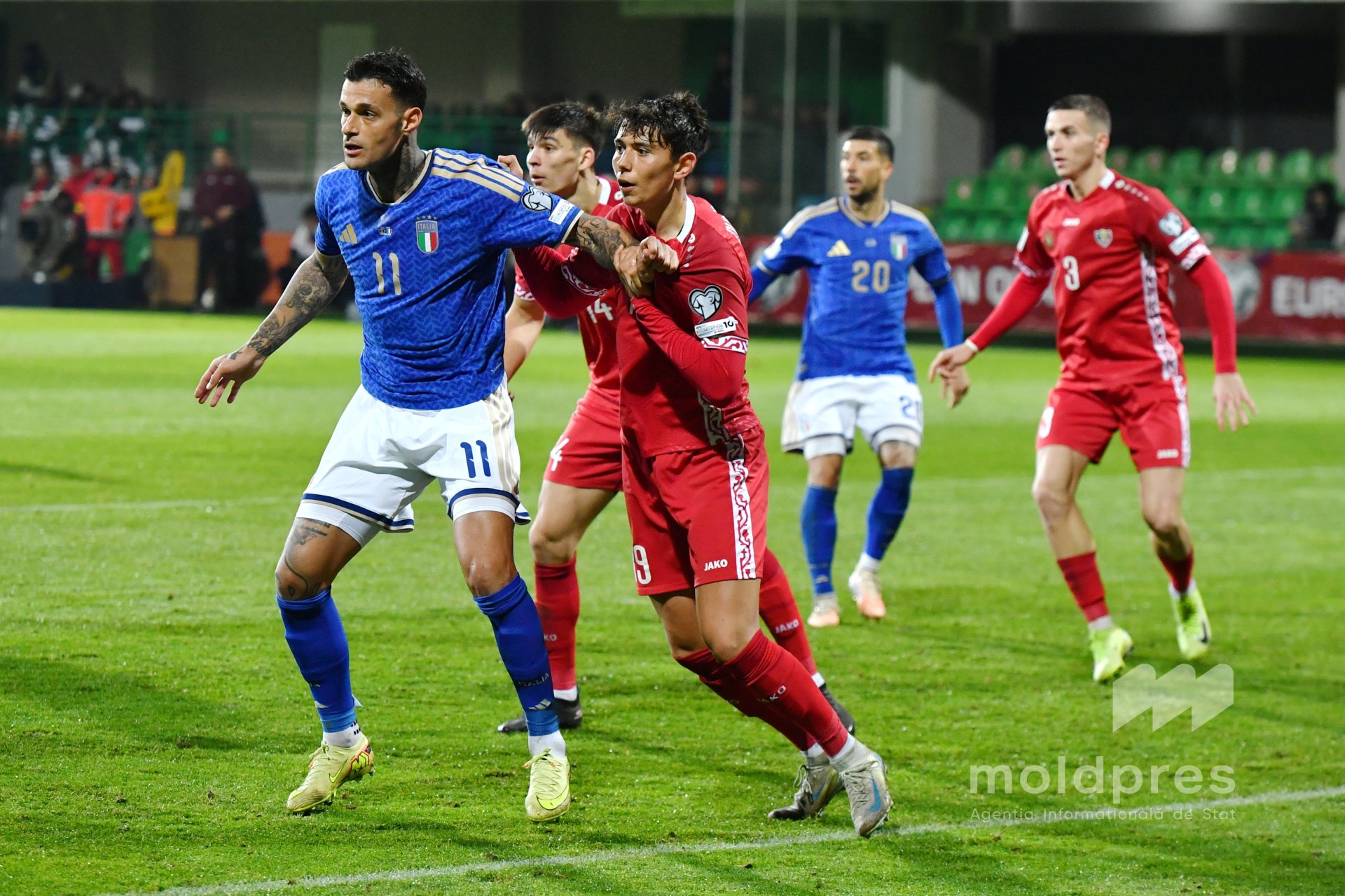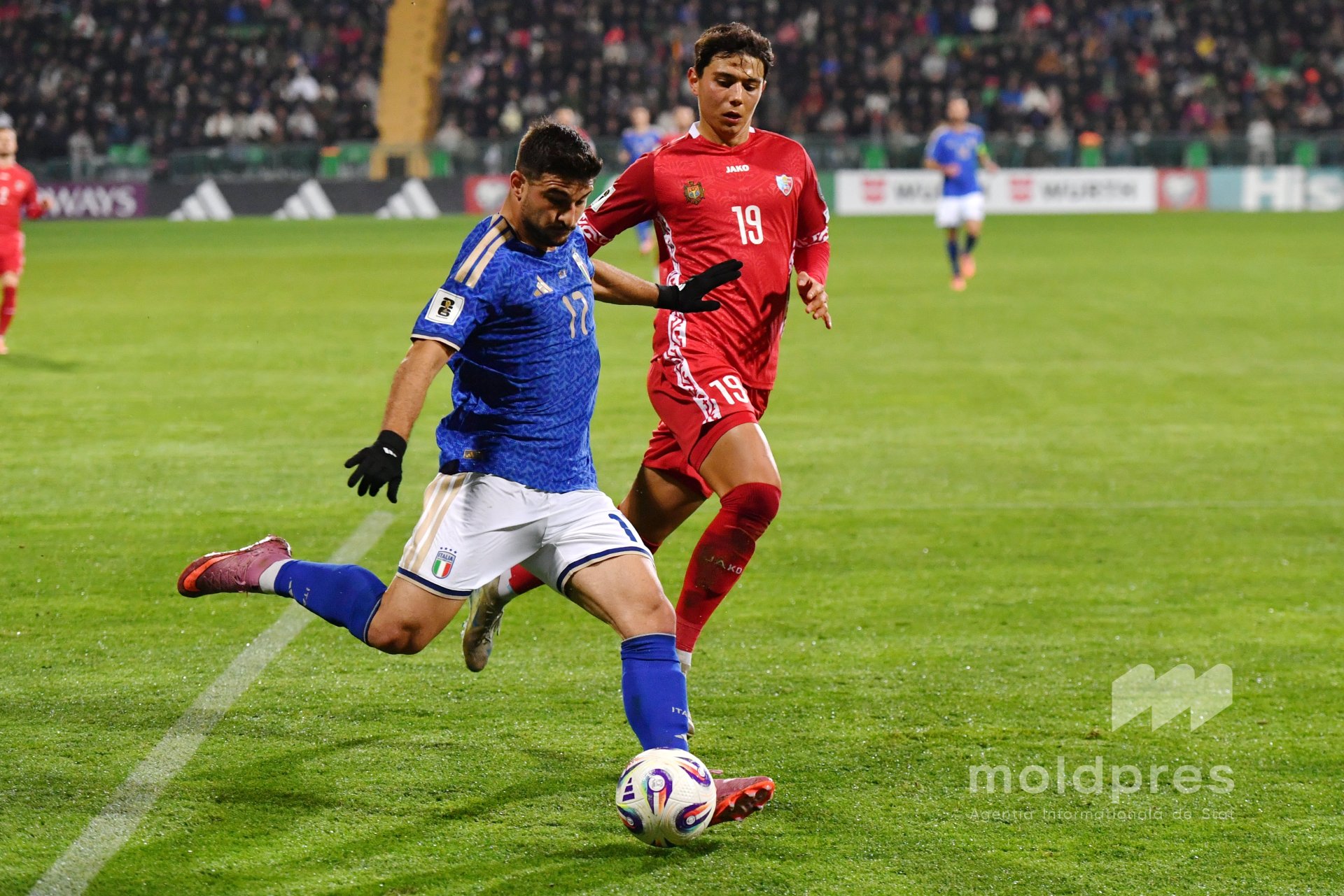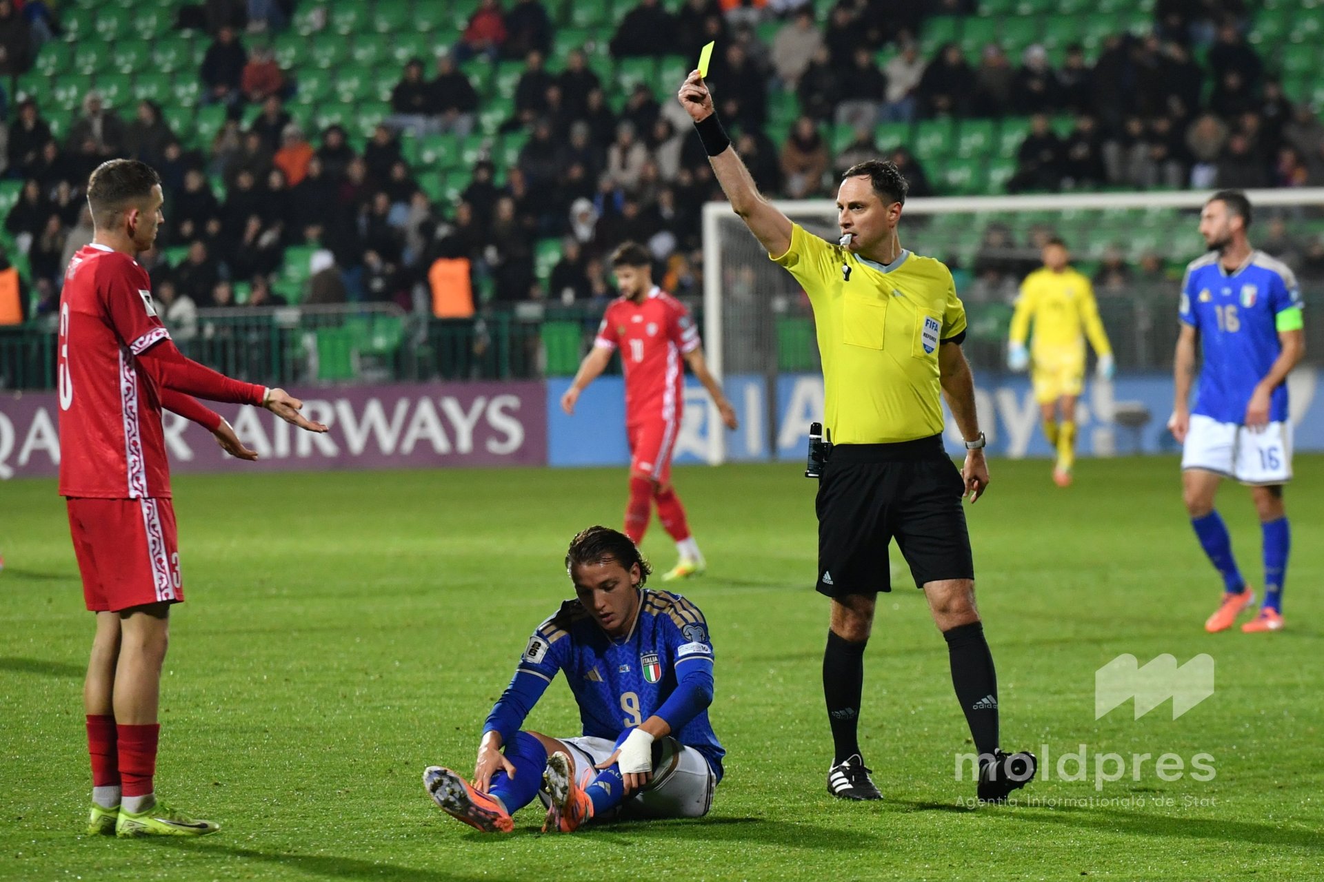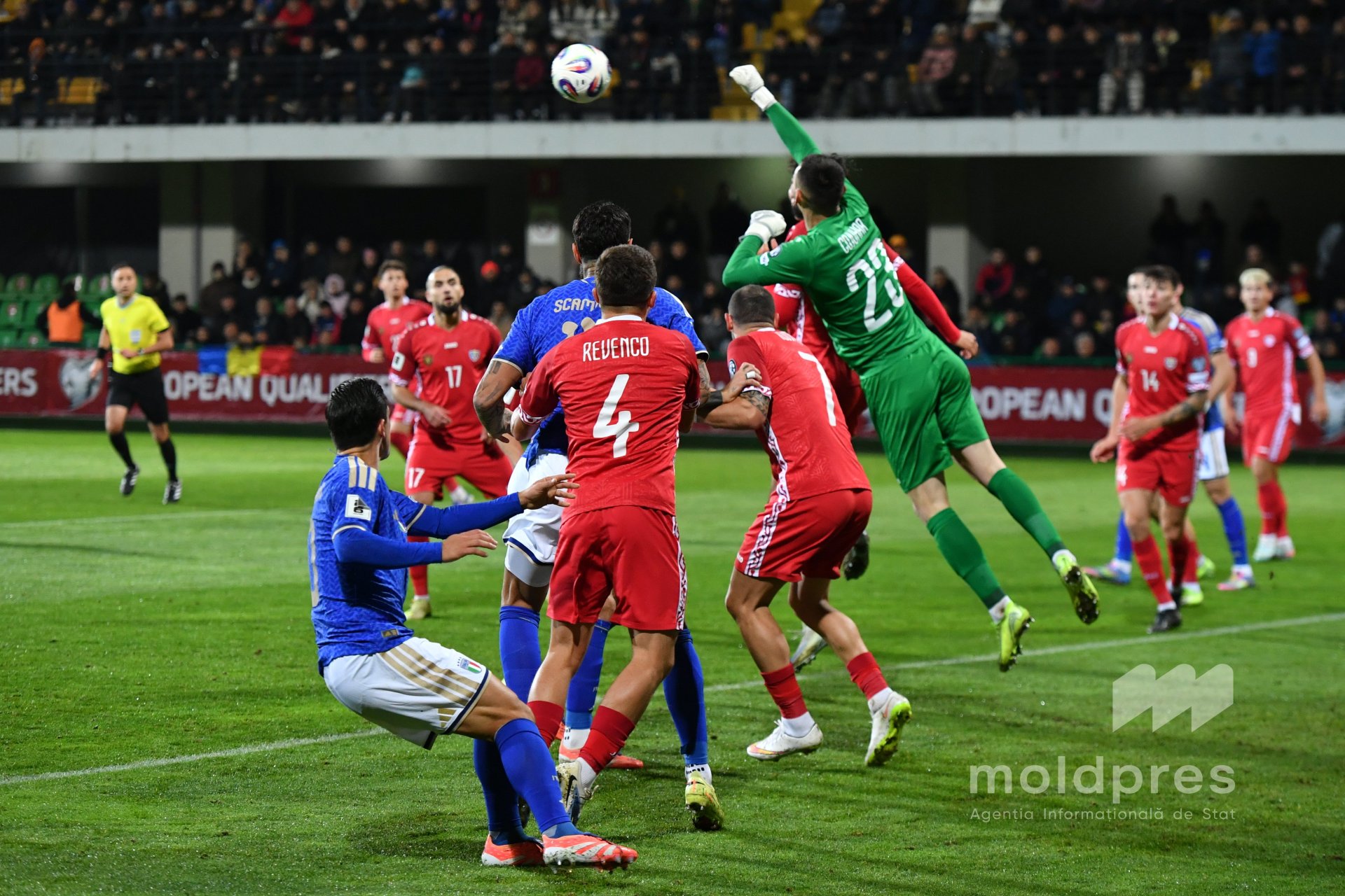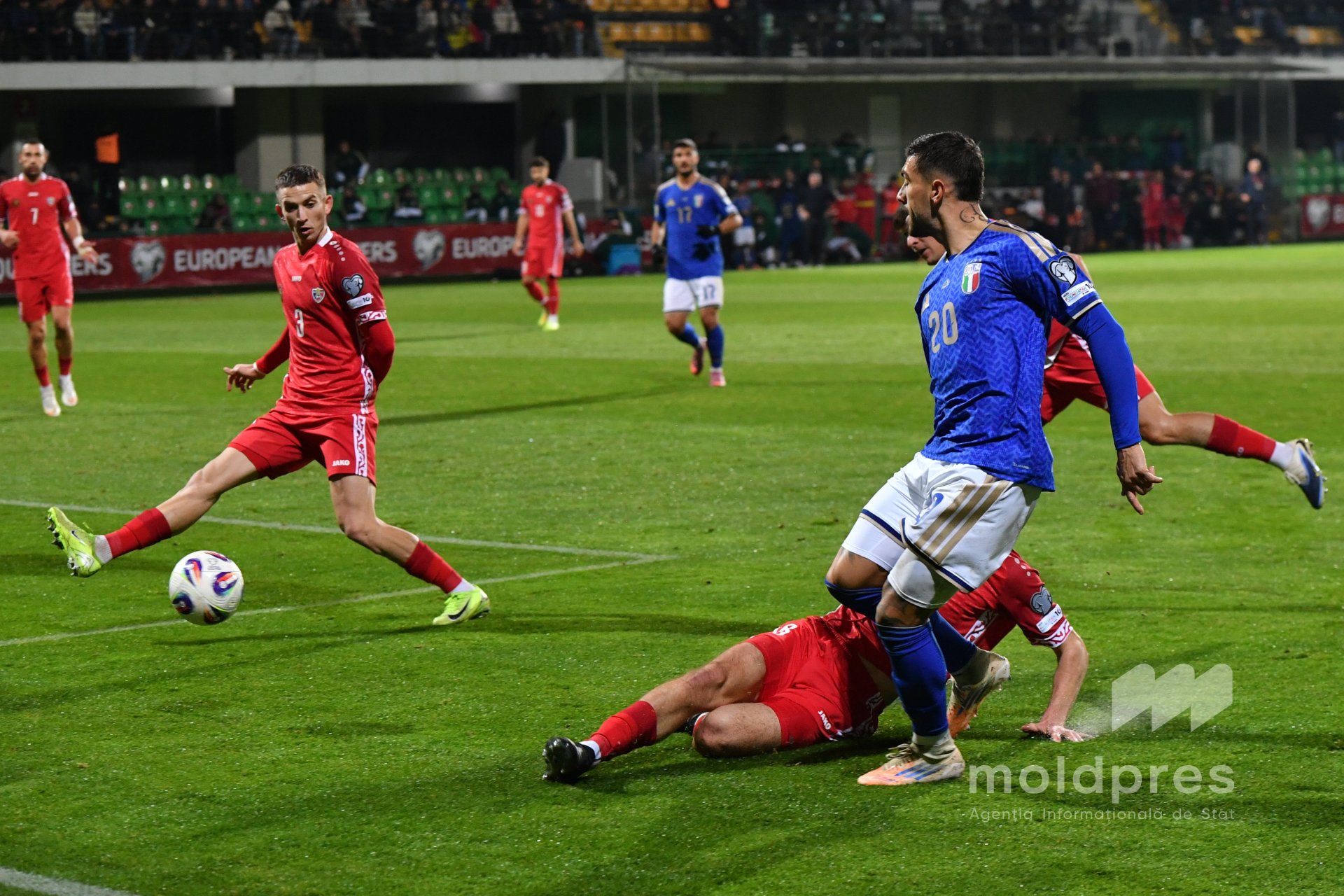 Selecționata Moldovei s-a întâlnit joi seara cu reprezentativa Italiei în penultimul meci al preliminariilor Campionatului Mondial 2026. Meciul a fost disputat pe stadionul „Zimbru” din Chișinău, în fața a 9.526 de spectatori.