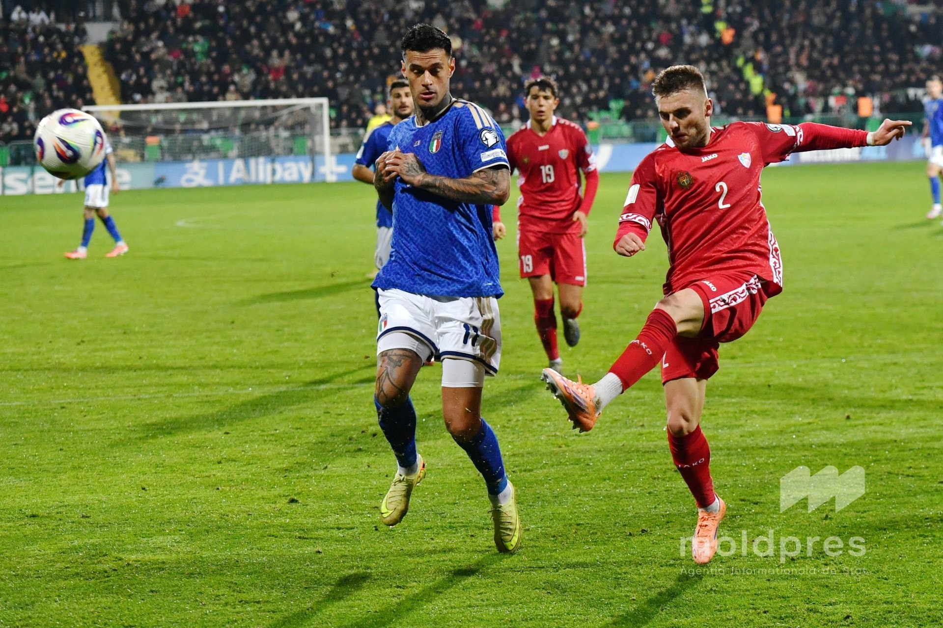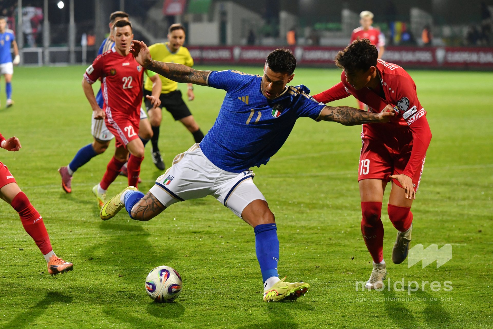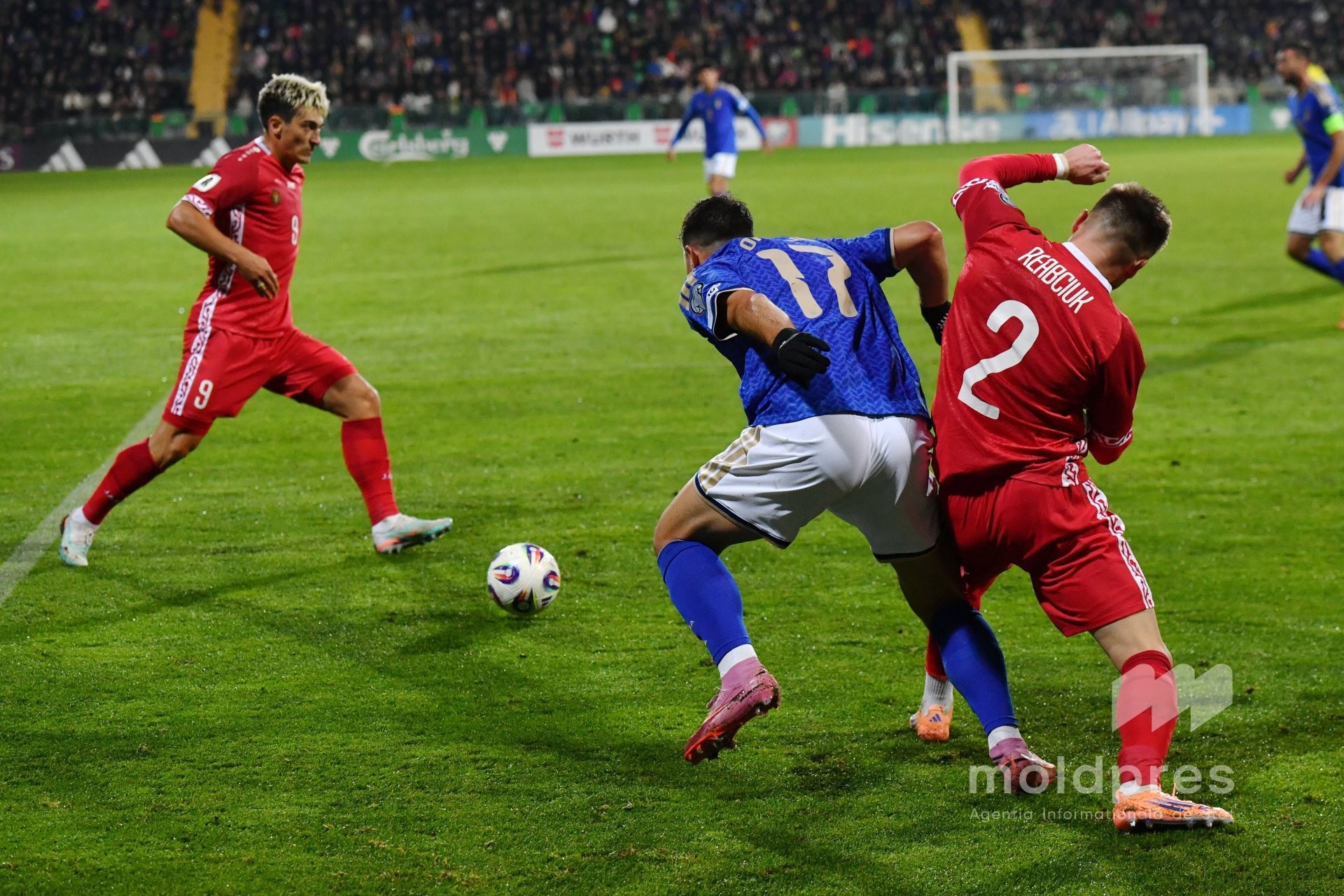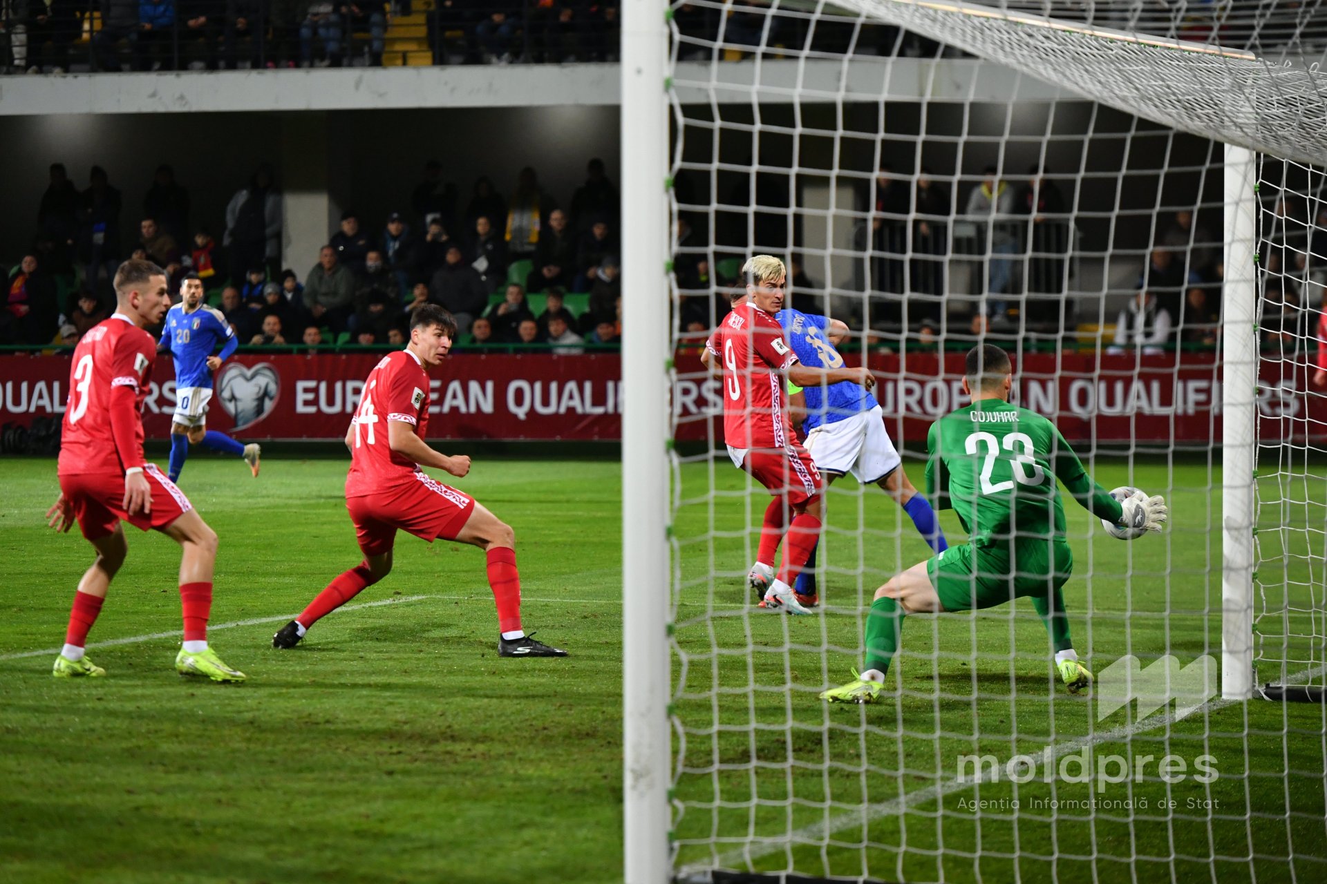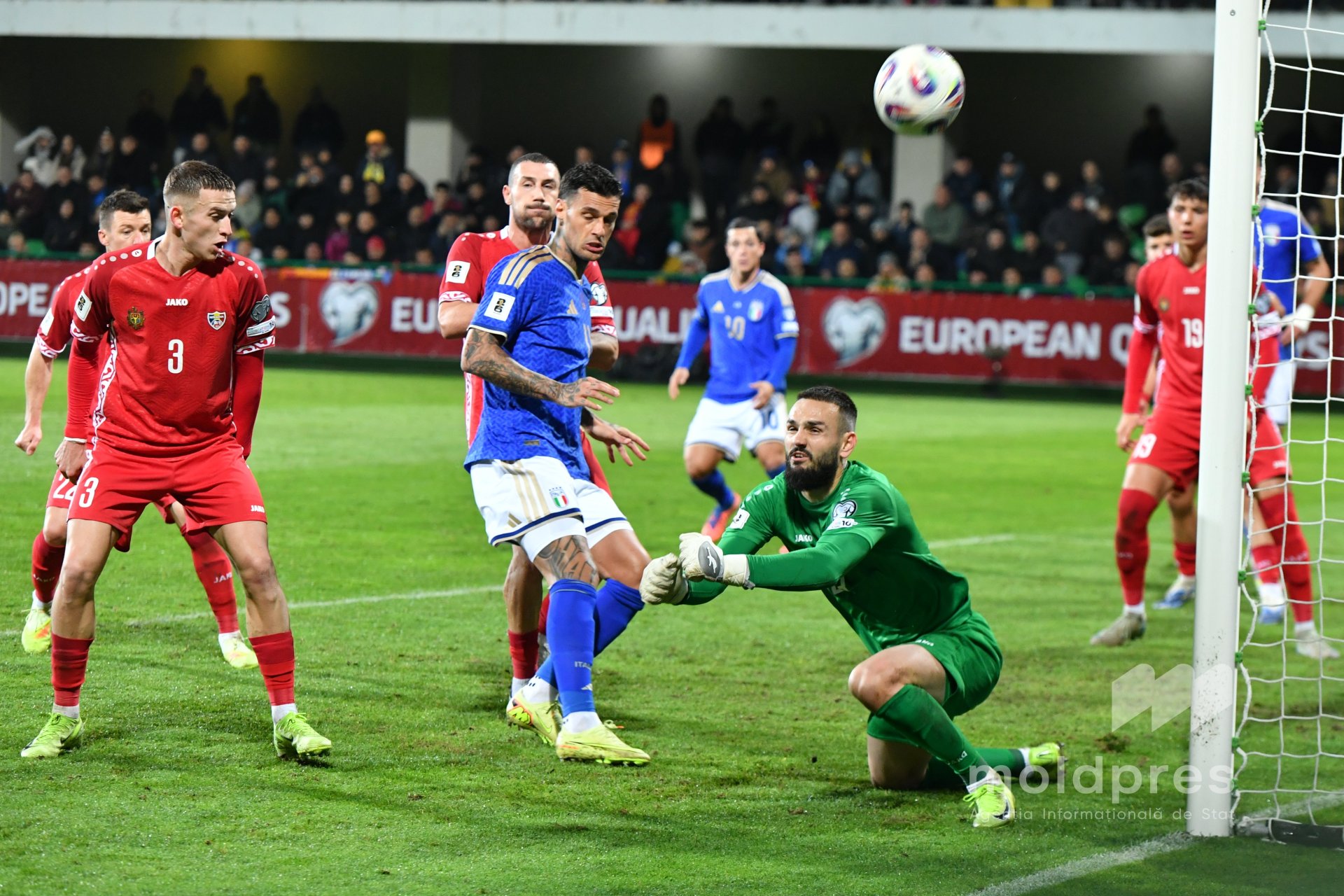 Selecționata Moldovei s-a întâlnit joi seara cu reprezentativa Italiei în penultimul meci al preliminariilor Campionatului Mondial 2026. Meciul a fost disputat pe stadionul „Zimbru” din Chișinău, în fața a 9.526 de spectatori.