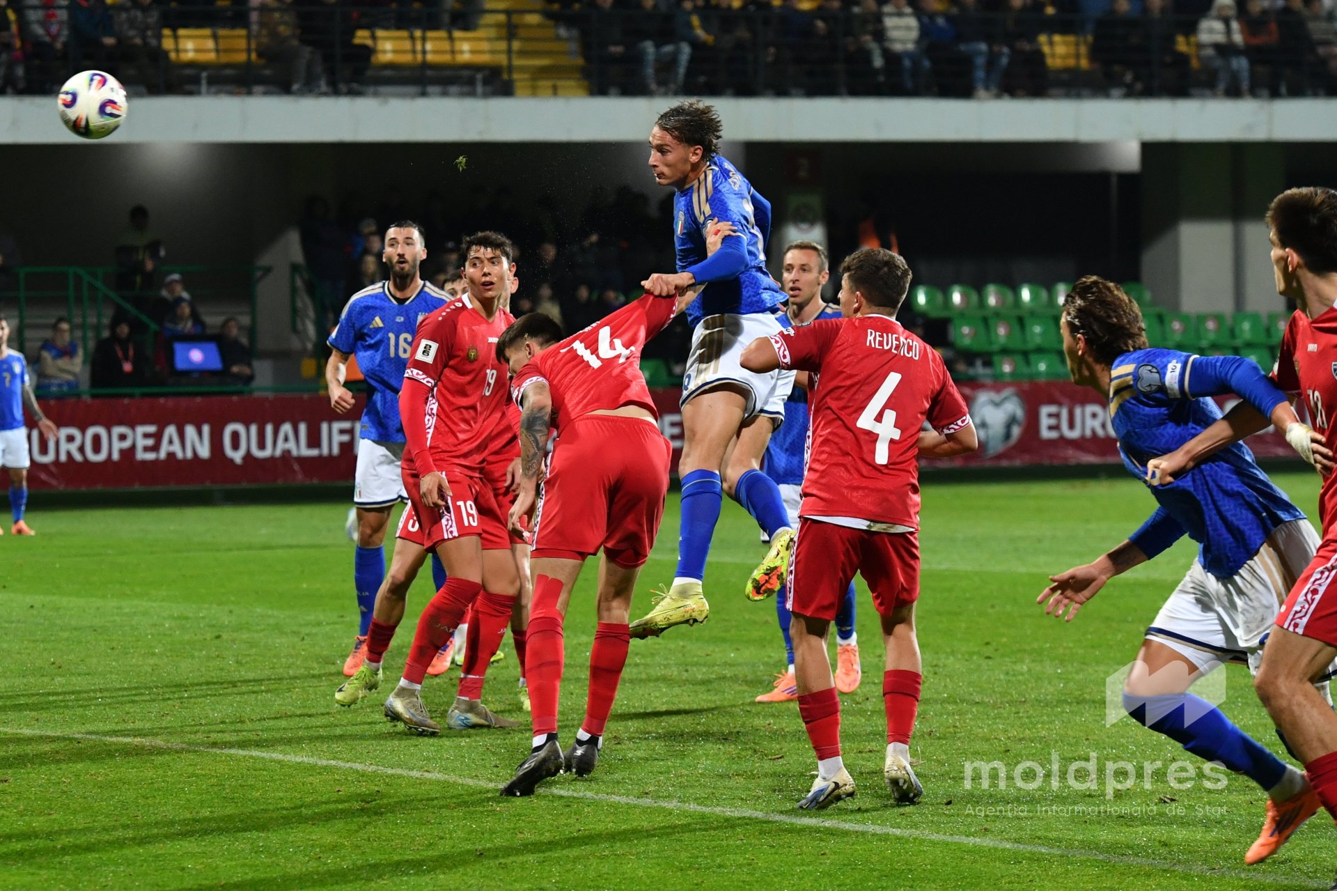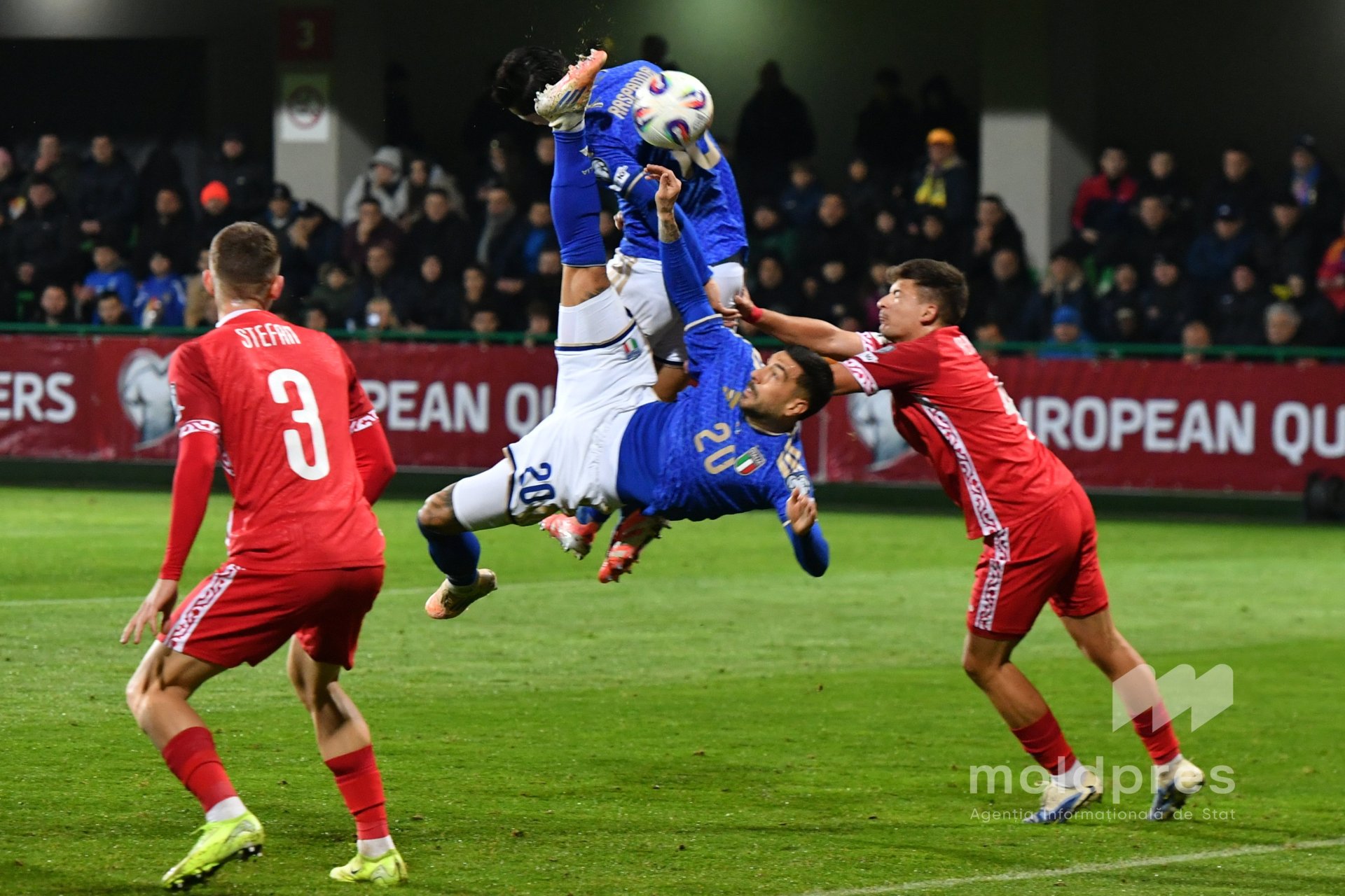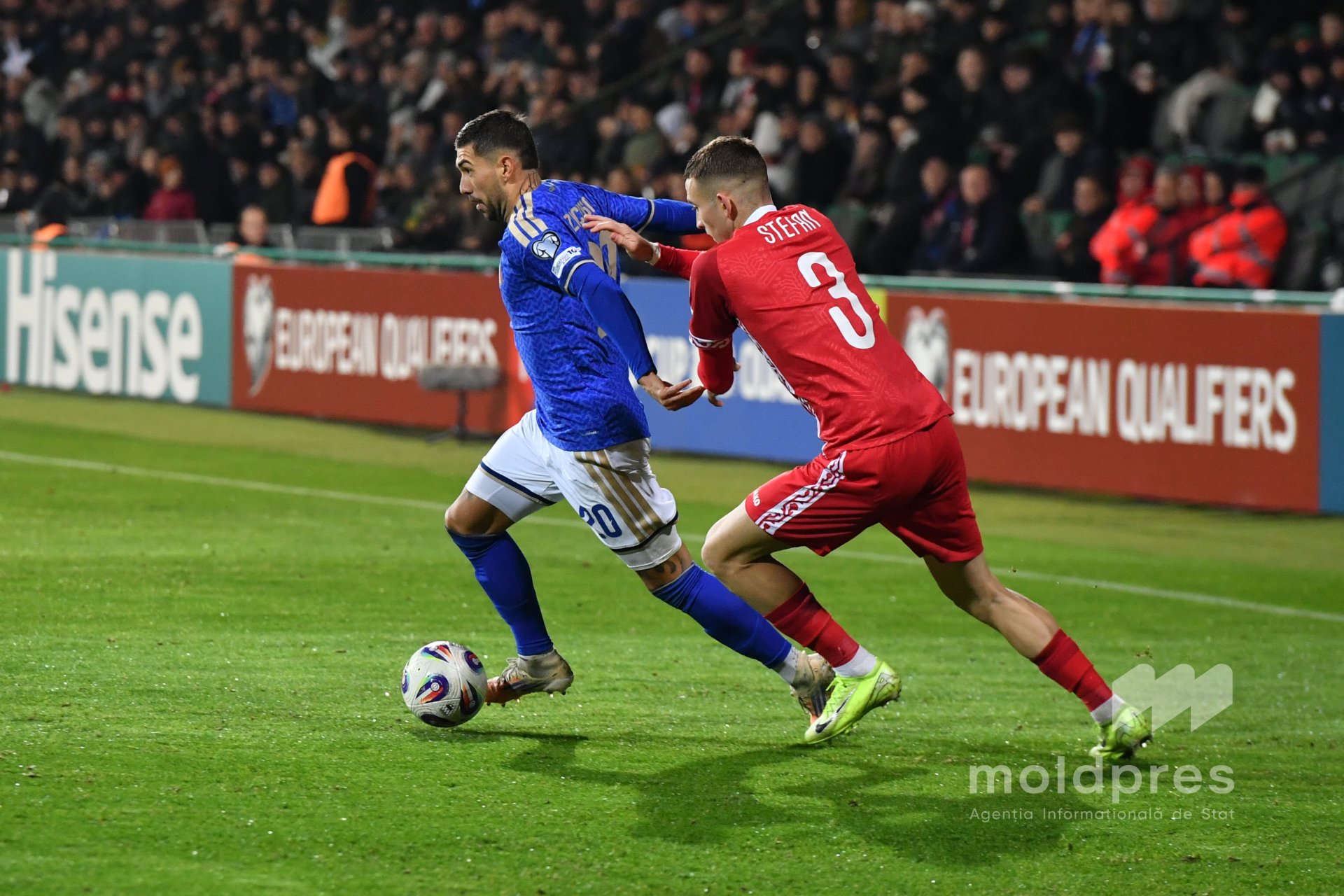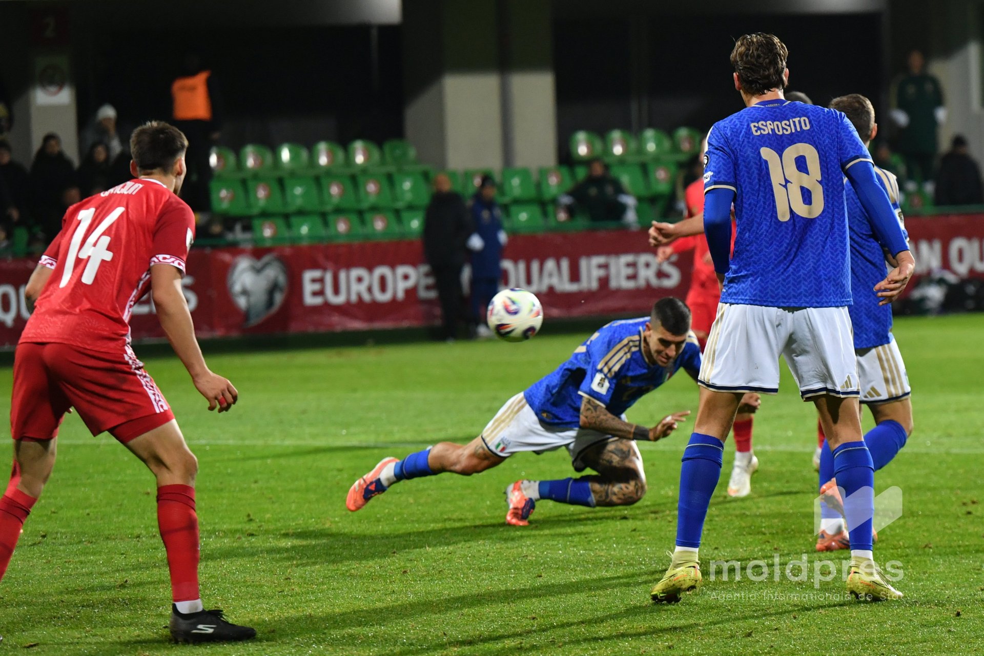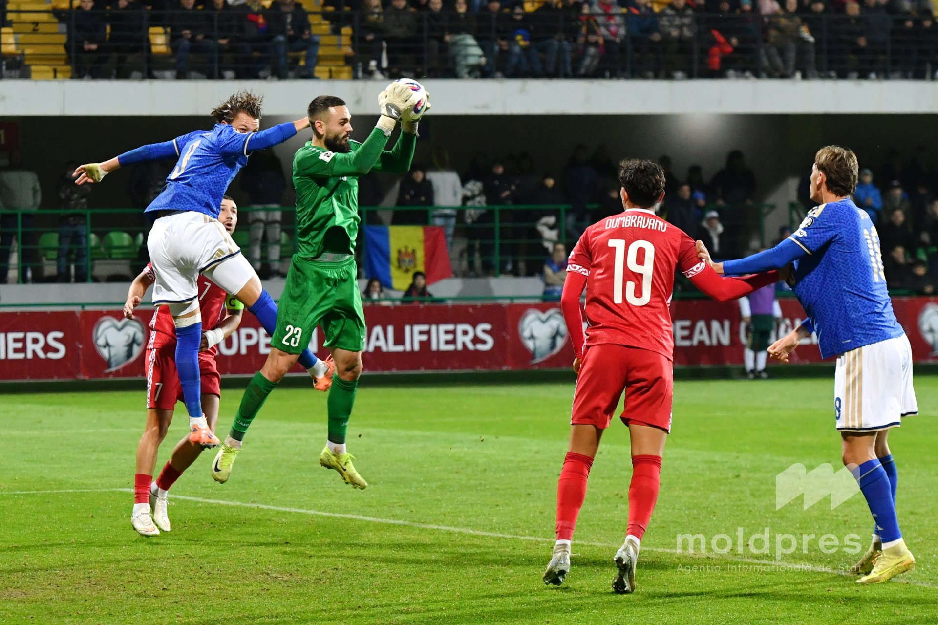 Selecționata Moldovei s-a întâlnit joi seara cu reprezentativa Italiei în penultimul meci al preliminariilor Campionatului Mondial 2026. Meciul a fost disputat pe stadionul „Zimbru” din Chișinău, în fața a 9.526 de spectatori.