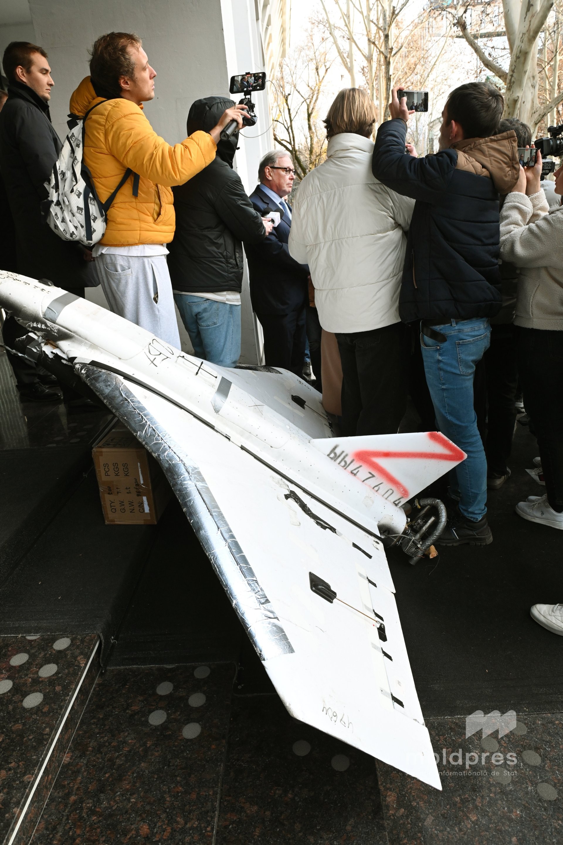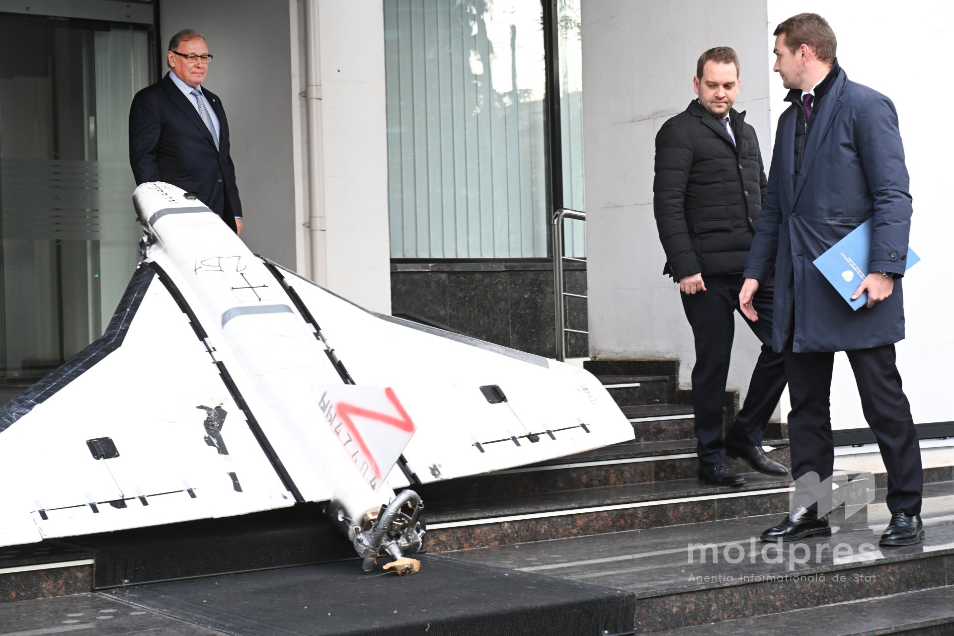 În fața clădirii MAE, înainte de sosirea diplomatului, a fost expusă drona „Gerbera”, de fabricație rusească, care a căzut pe acoperișul unei case din raionul Florești. Astfel, MAE a calificat acțiunile drept absolut inadmisibile, subliniind că acestea reprezintă o încălcare gravă a suveranității Republicii Moldova și o amenințare directă la adresa securității naționale și regionale.