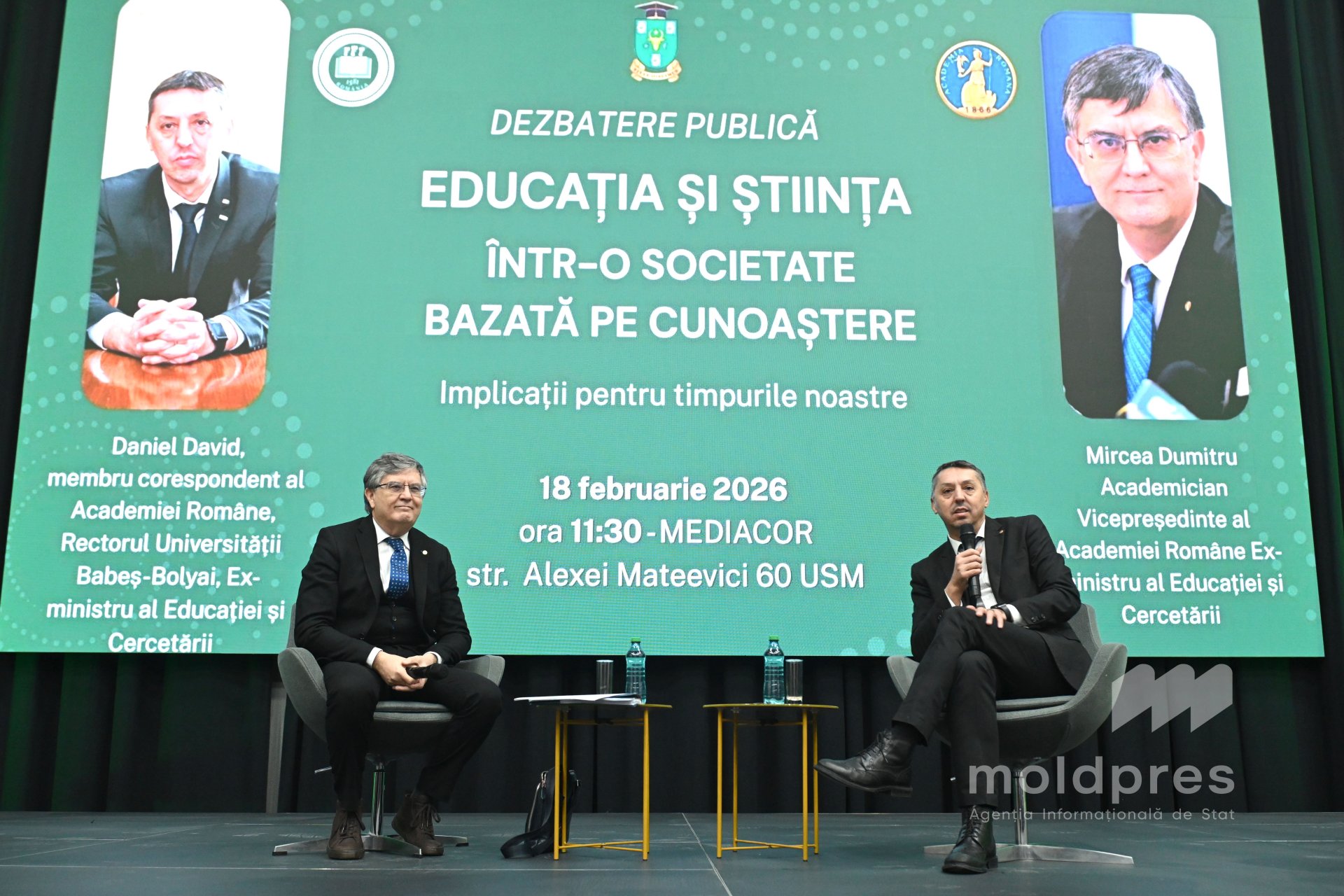 Academicianul Mircea Dumitru, vicepreședinte al Academiei Române, și prof. univ. dr. Daniel David, rectorul Universității Babeș-Bolyai, au oferit un interviu în exclusivitate pentru Agenția Informațională de Stat MOLDPRES.