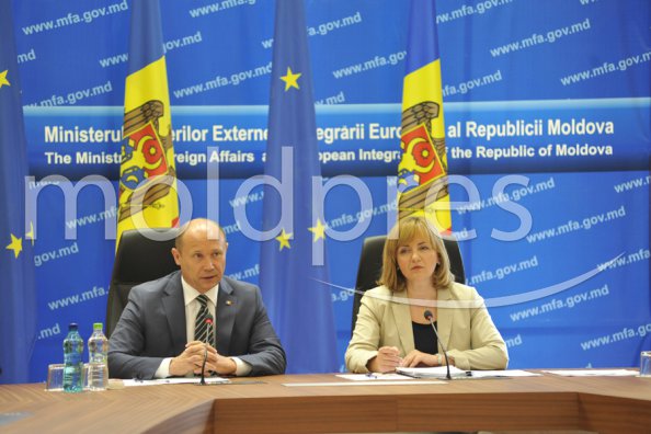 Prim-ministrul Valeriu Streleţ şi vicepremierul Natalia Gherman, ministru al Afacerilor Externe şi Integrării Europene, au ținut o conferinţă de presă cu ocazia marcării a unui an de la implementarea Acordului de Asociere RM-UE