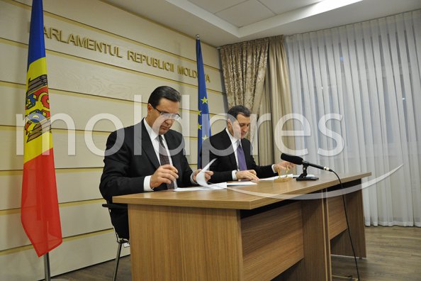 Semnarea acordului de constituire a alianţei între PLDM şi PDM.
