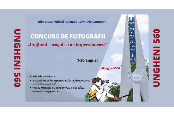 „Aveți fotografii în care sunt imortalizate locuri ale Ungheniului? Expediați-le pentru concursul anunțat de Biblioteca „Dimitrie Cantemir”. Dacă nu, mai aveți timp pentru a fotografia ceea ce vă impresionează în municipiul Ungheni. Nu ratați ocazia să le arătați oamenilor ceea ce, poate, ei nu au văzut încă”, arată Primăria Ungheni.
