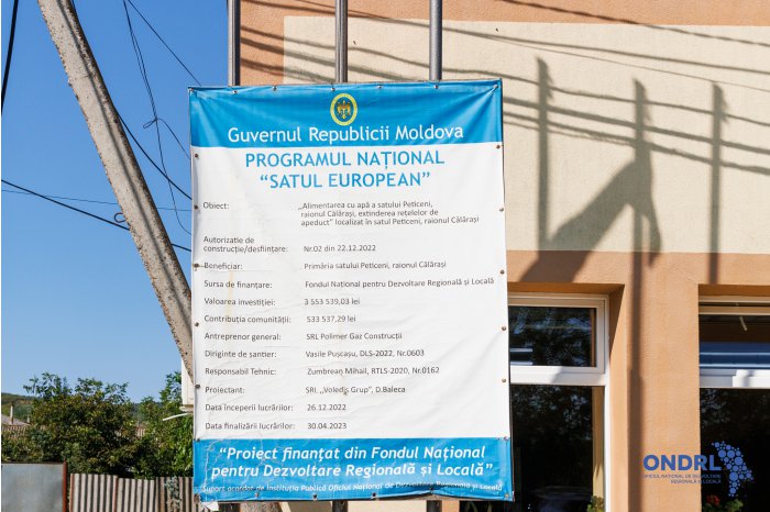 Potrivit Oficiului Național de Dezvoltare Regională și Locală, până în prezent, din cele 896 de inițiative aprobate pentru finanțare în cadrul programelor Naționale „Satul European” ediția I, „Satul European Expres” și „Extinderea grupelor de creșă publice”, au fost finalizate 853 de proiecte. Din numărul total de inițiative aprobate, 154 de proiecte vizează construcția și reabilitarea rețelelor de apă și canalizare.