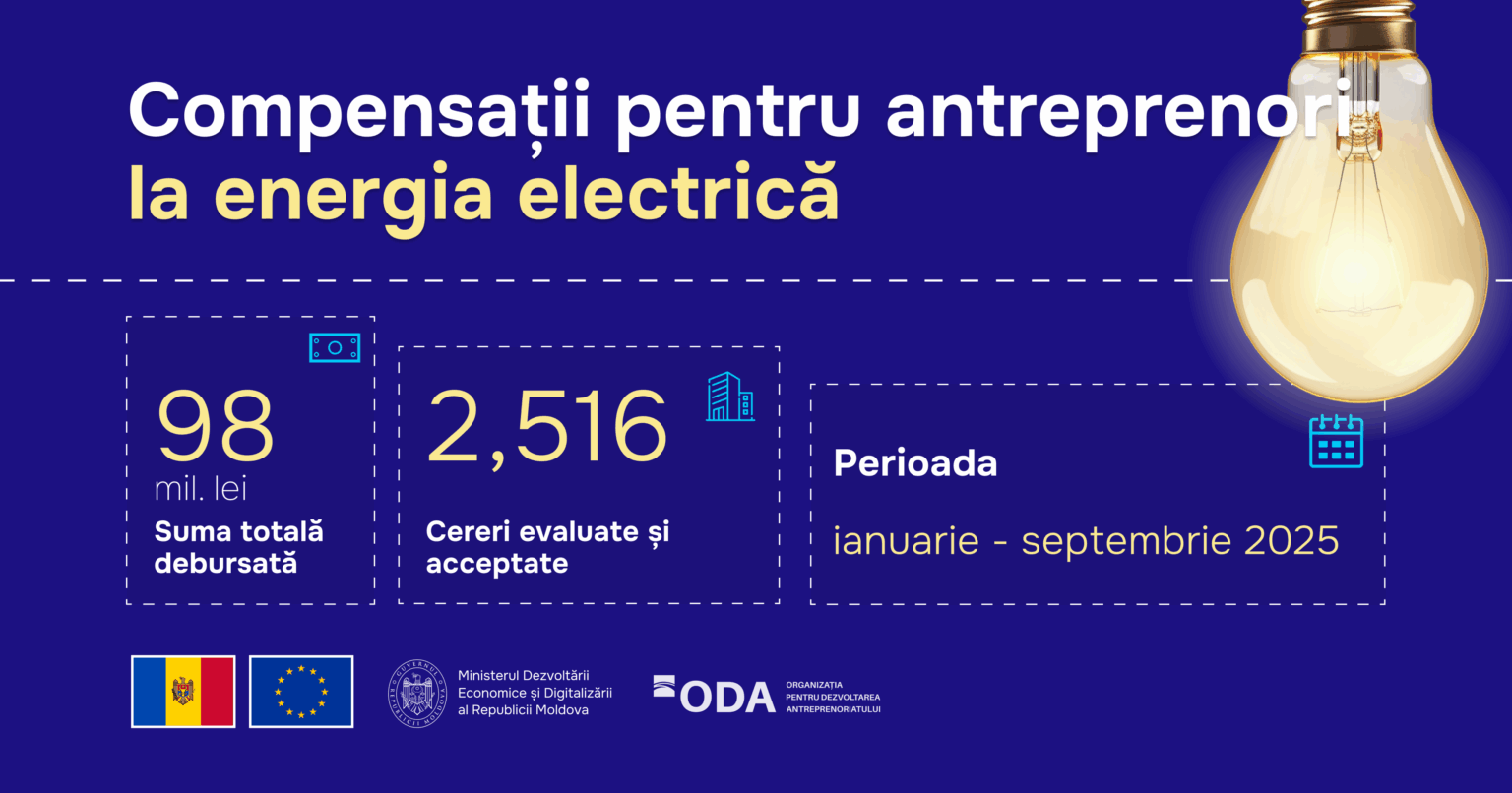 1085 предпринимателей получили компенсацию за электроэнергию с января по август 2025 года. Эта поддержка является частью Программы компенсаций, запущенной правительством при финансовой поддержке Европейского союза, передает МОЛДПРЕС.