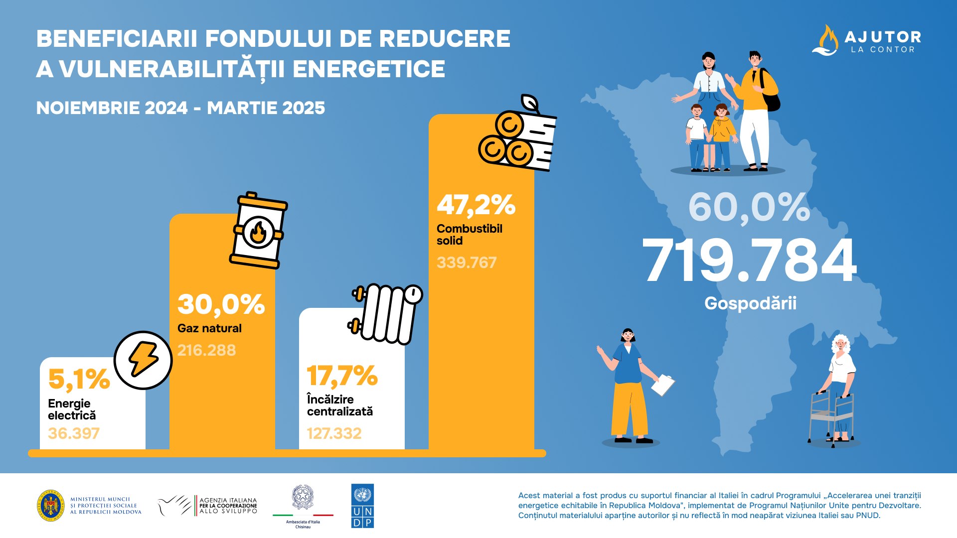 В отопительный сезон 2024-2025 годов власти выделили бюджет в размере 2,69 млрд леев, из которых 1,15 млрд леев были предоставлены странами-партнерами, в основном членами ЕС. В общей сложности, в предыдущем сезоне финансовую поддержку получили более 760 000 семей, то есть около 1,4 млн человек.