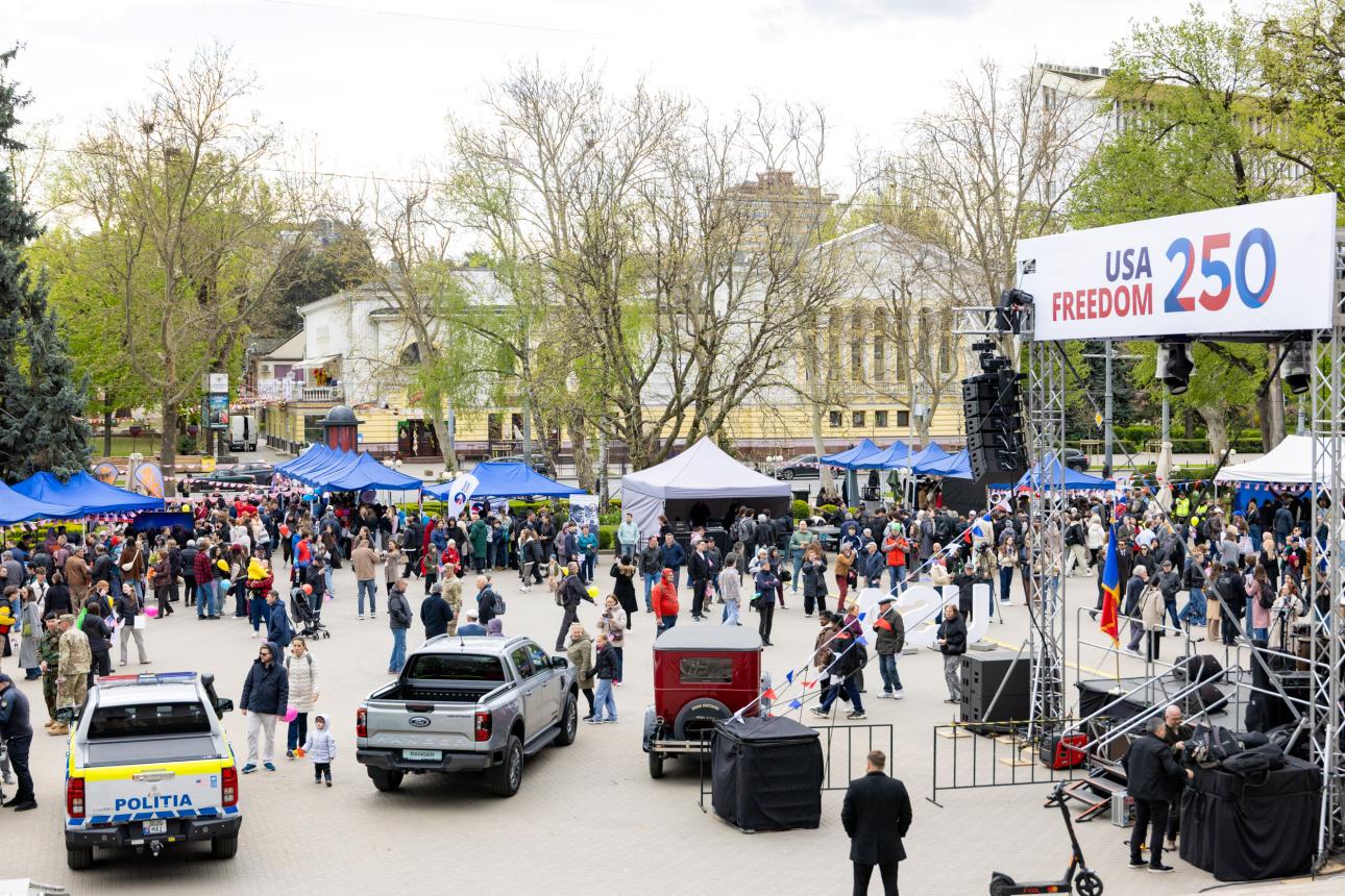 В этом году фестиваль "USA Freedom 250" стартовал в Бельцах и продолжится завтра в Комрате. Программа включает возможности для общения с командой и партнерами посольства США в Кишиневе, показы американских фильмов, а также другие развлекательные мероприятия для семей.