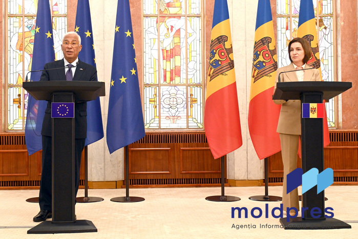 «ЕС уже показал, что поддерживает граждан Молдовы во время кризиса. Вы можете на нас положиться, мы надежный и предсказуемый партнер. Европейский союз и Республика Молдова будут и впредь решительно выступать за мир, работая плечом к плечу, чтобы формировать это общее будущее, но на наших собственных условиях, без чьего-либо вмешательства и без того, чтобы кто-либо принимал решения за нас. Процесс вступления в Европейский союз сложный и ответственный, это не просто обещание на завтра, а прочное партнерство сегодня. Партнерство, построенное на доверии, убежденности и стратегическом видении. Рад, что на прошлой неделе Совет Европейского союза и Европейский парламент достигли политического соглашения по финансовому компоненту Плана роста для Республики Молдова. После принятия и на основе баланса результатов реформ ЕС предоставит Республике Молдова 1,9 млрд евро для стимулирования экономики, привлечения инвестиций и содействия росту. Это будет самый крупный пакет финансовой поддержки со стороны ЕС, предоставленный с момента обретения Молдовой независимости. Заверяю, вместе мы сильнее и добьемся процветания», — сказал Антониу Кошта.